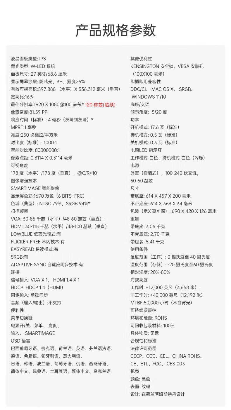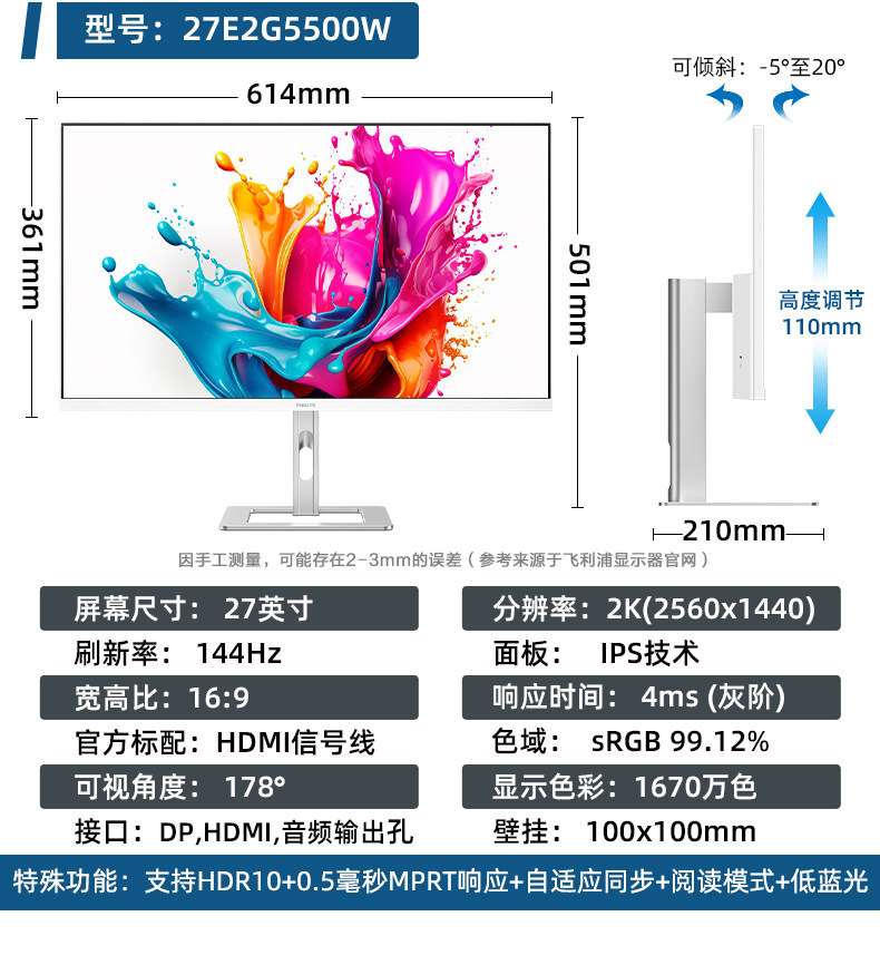 | Color Classification | 23.8-Inch 120Hz/Low Blue Light Eye Protection Ips Screen,27inch /2K Hd/180Hz/Hdr10/Low Blue Light Eye Protection/Ips Screen,27inch /2K/Overclocking 210Hz/10Bit/Zero-Sense Synchronous Acceleration,White/ 23.8inch /120Hz/Low Blue Light Eye Protection Ips Screen,23.8inch /2K Hd/144Hz/Low Blue Light Zero-Sense Synchronous Acceleration/Hdr/Fastips Screen,27-Inch 120Hz/Low Blue Light Eye Protection Ips Screen,White/ 27inch /120Hz/Low Blue Light Eye Protection Ips Screen,27inch /2K Hd/120Hz/Low Blue Light Eye Protection Ips Screen,27inch /2K Hd/100Hz/Hdr/Low Blue Light Eye Protection Ips Screen/Lift and Rotate Vertical Screen,White/ 27inch /2K/144Hz/Ips Hardware Low Blue Light Eye Protection Screen,27inch /4K Ultra-Clear/Hdr400 Certification/Ips Screen/1.07 Billion Colors/Type-C Laptop Direct Connection 65W/Lifting and Rotating Vertical Screen |