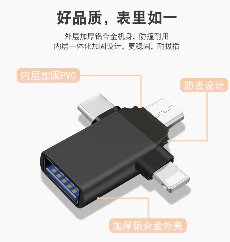 | Color Classification | [Space Gray]Android Micro Interface + Type-C Interface + Apple Interface Otg[14]Anti-Loss 3-in-1 Tracker with Chain (No App Required / Ios 13+ Compatible),[Deep Black]Android Micro Interface + Type-C Interface + Apple Interface Otg[14]Anti-Loss 3-in-1 Tracker with Chain (No App Required / Ios 13+ Compatible),[Local Gold]Android Micro Interface + Type-C Interface + Apple Interface Otg[14]Anti-Loss 3-in-1 Tracker with Chain (No App Required / Ios 13+ Compatible),Silver-Otg[11]2-in-1 - Comes with Lanyard,Black-Otg[11]2-in-1 - Comes with Lanyard,Gold-Otg[11]2-in-1 - Comes with Lanyard,Silver[Type-C Interface]★Send Lanyard,Black[Type-C Interface]★Send Lanyard,Gold[Type-C Interface]★Send Lanyard,USB3.0+Type-C Female Charging Two-In-One,Type-C to Usb2.0+3.0 Two-In-One Expansion,Aluminum Shell Usb3.0[Titanium Gray]Three-In-One Otg Data Cable (Type-C+Apple+Mirco) Universal,Aluminum Shell Usb3.0[Deep Black]Three-In-One Otg Data Cable (Type-C+Apple+Mirco) Universal,Aluminum Shell Usb3.0[Local Gold]Three-In-One Otg Data Cable (Type-C+Apple+Mirco) Universal,[Yashi Silver]Type-C Interface + Apple Interface Otg[16]Woven 2-in-1 (No App Required / Ios 13+ Compatible),[Deep Black]Type-C Interface + Apple Interface Otg[16]Woven 2-in-1 (No App Required / Ios 13+ Compatible),[Local Gold]Type-C Interface + Apple Interface Otg[16]Woven 2-in-1 (No App Required / Ios 13+ Compatible),Fro Apple[14]Otg Adapter Usb3.0[External USB Flash Drive/Mouse/Keyboard/Camera/Card Reader]Wise Black,Fro Apple[14]Otg Adapter Usb3.0[External USB Flash Drive/Mouse/Keyboard/Camera/Card Reader]Streaming Silver,Fro Apple[14]Otg Adapter Usb3.0[External USB Flash Drive/Mouse/Keyboard/Camera/Card Reader]Chinese Red,1,2,3 |