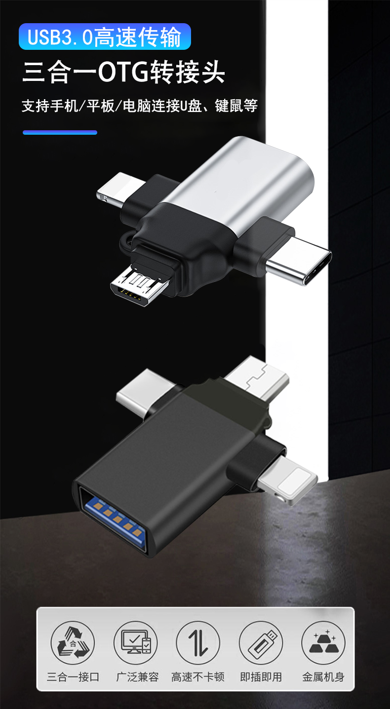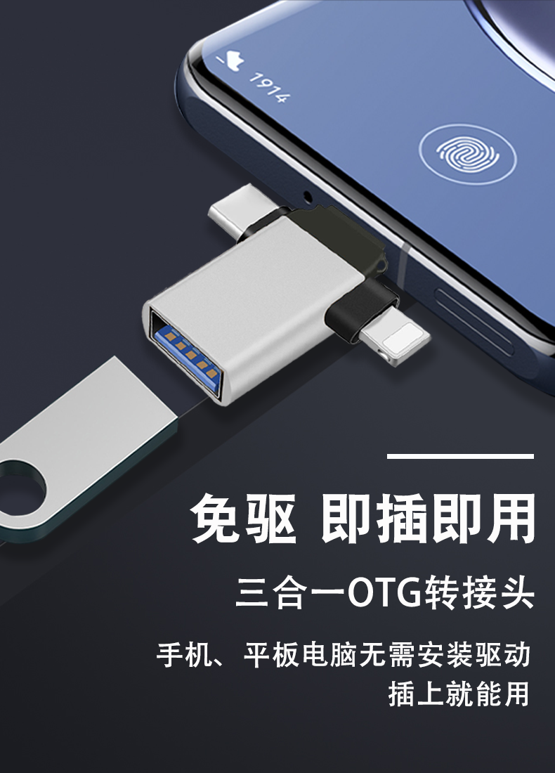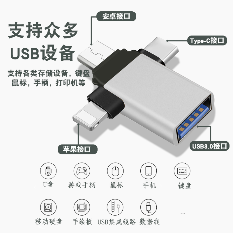 Mobile Phone Converter USB to USB Flash Drive Compatible with Apple, Android, Type-C, Huawei Three-In-One Otg Adapter Vivo