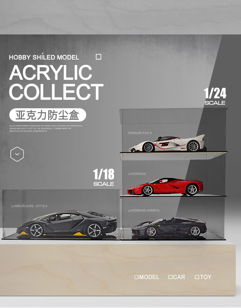 Highly Transparent 1:32 Acrylic Display Box Dust Cover for Figurines, Anime, Car Models, Blind Boxes, 1:24 Storage Box