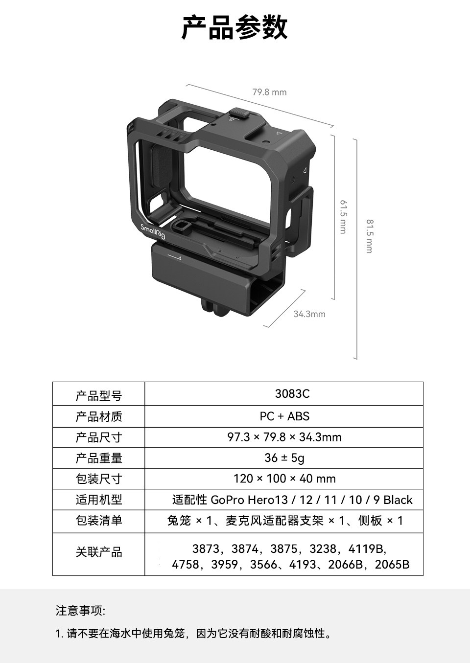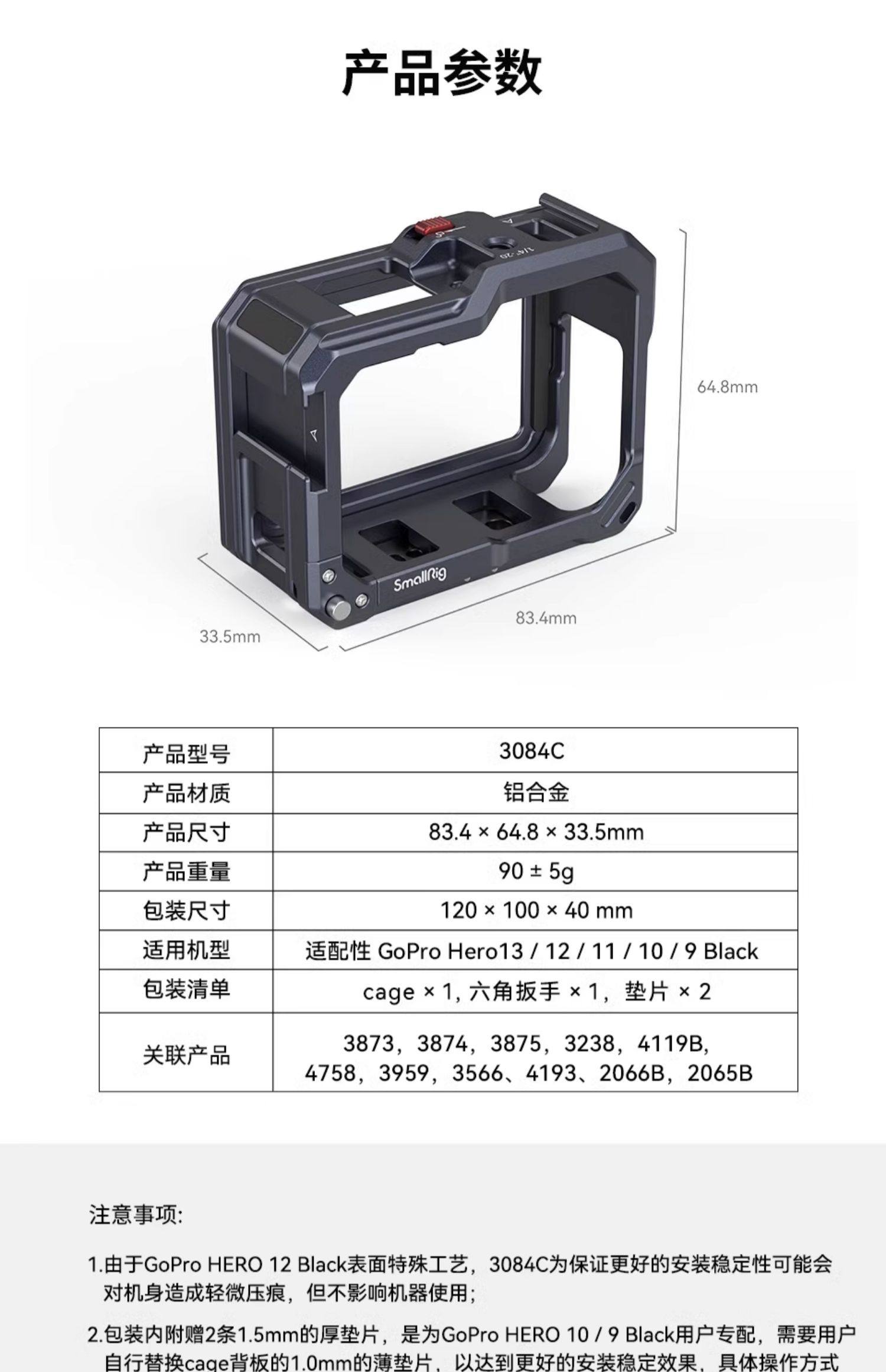 Smallrig Sports Camera Accessories Are Suitable for Gopro Hero13 12 11 10 9 All-Inclusive Cage Camera Accessories