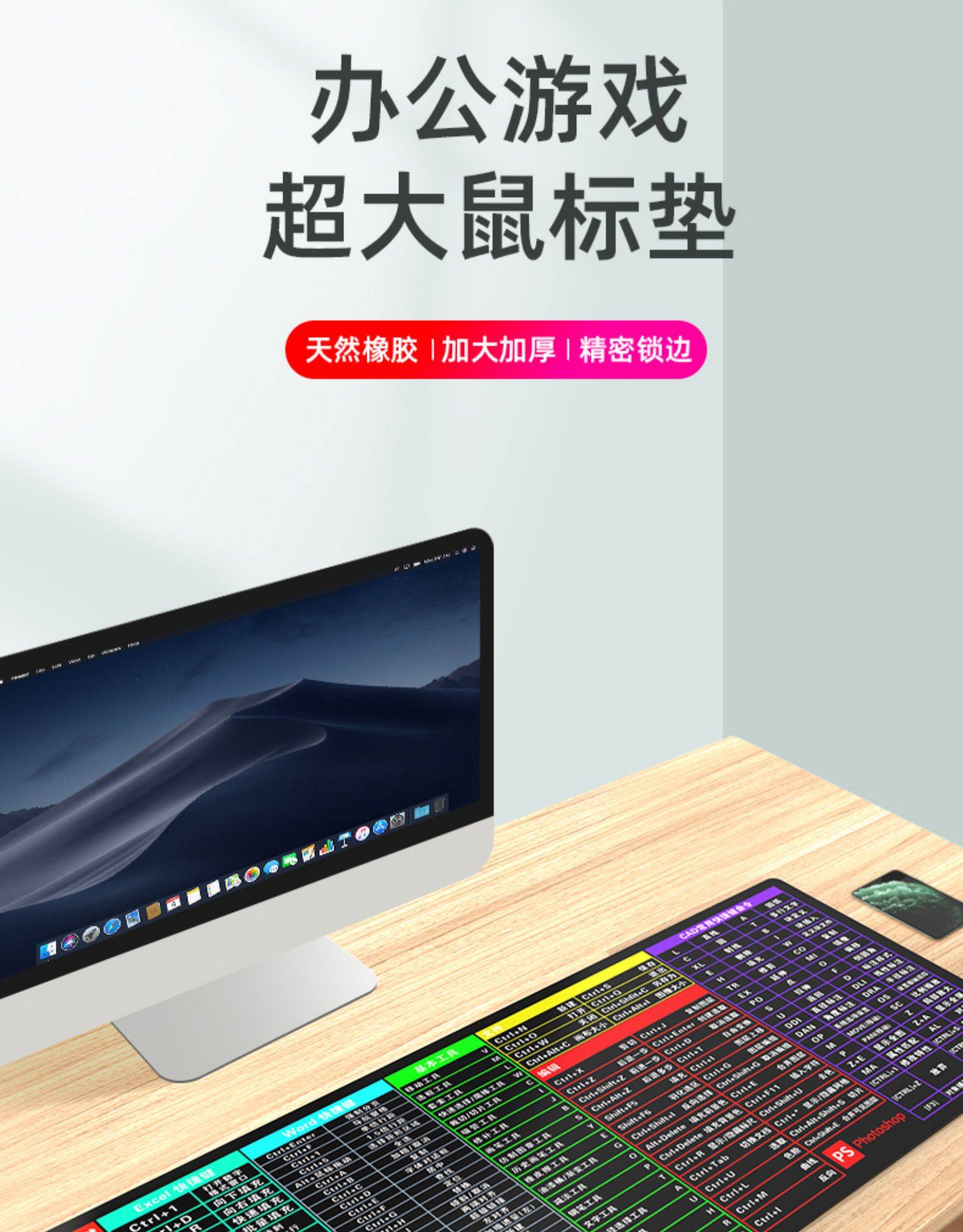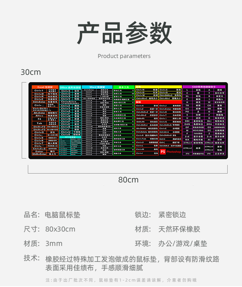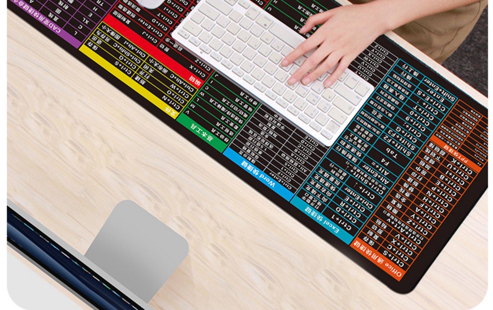 Extra Large Mouse Pad with Edge Stitching, Shortcut Keys Collection, Suitable for Office, Home, Gaming, E-Sports, Girls, Computer Desktop, Keyboard Mat