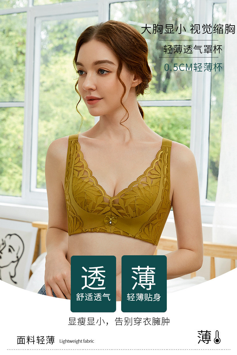 Plus Size Lingerie Bra, Thin Style for Women, Wireless, Anti-Sagging, for Chubby Women, Push-Up, Adjustable, Makes Large Breasts Appear Smaller, New