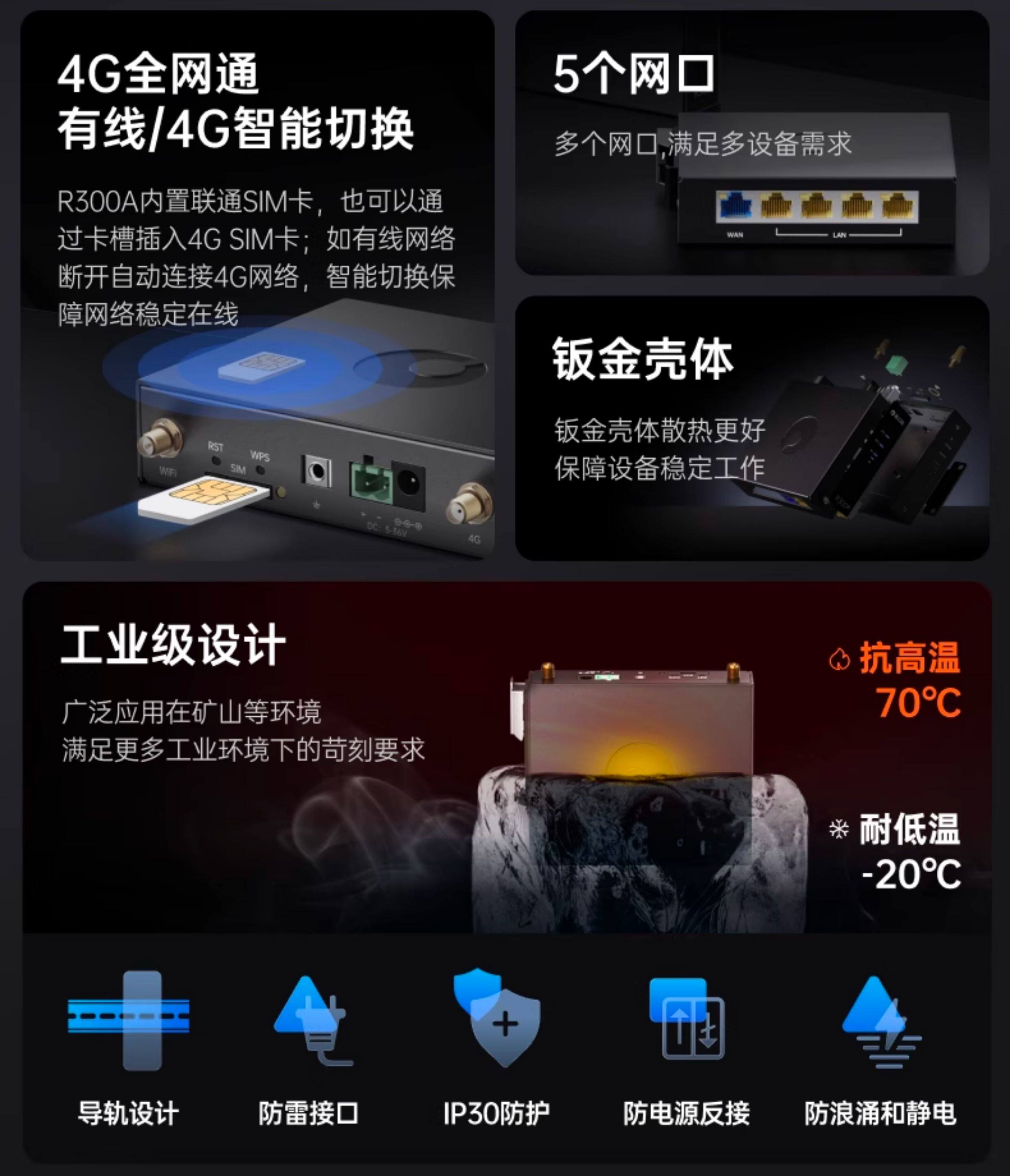 Dandelion 4g Industrial Router R300A Plug-In Card Wireless Wifi Iot Lte Full-Network Connectivity Vehicle-Mounted Plc Remote Networking Internal Network Penetration External Antenna Rail-Type Cpe Remote Operation and Maintenance