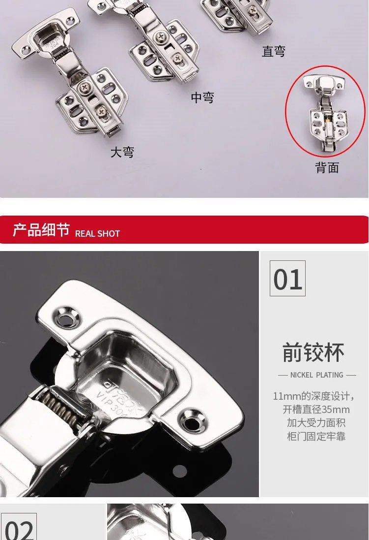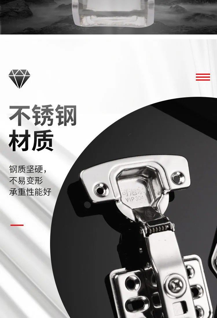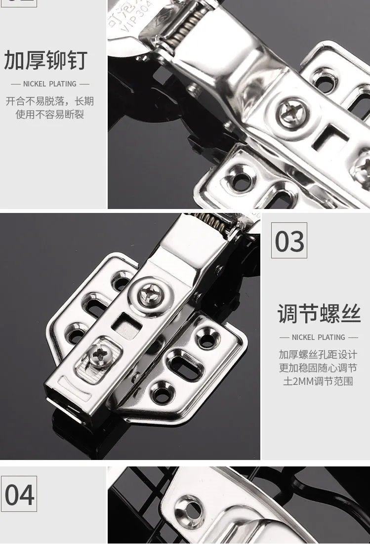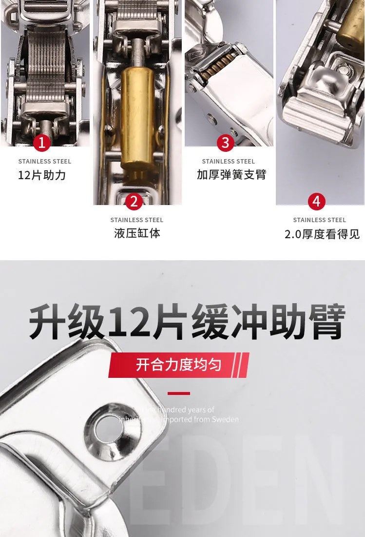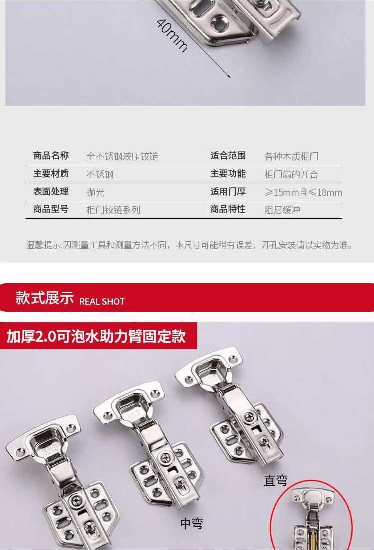 304 Stainless Steel Hydraulic Damping Buffer Hinge for Cabinet and Wardrobe Doors, Medium Bend, Aircraft-Grade Thickened Hinge Spring 2024