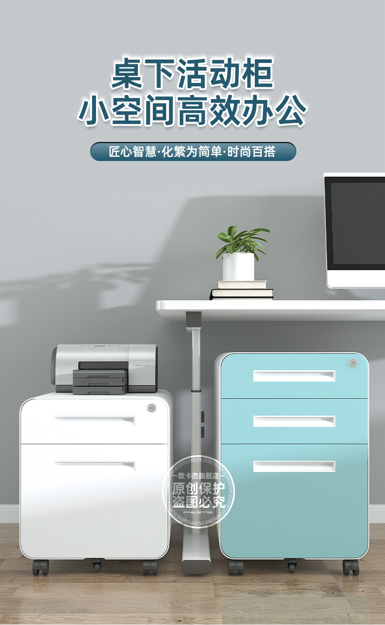 Mobile File Cabinet under the Desk, Low Cabinet with Three Drawers, Storage Cabinet, Movable Cabinet with Metal Strap Lock, Small Storage Cabinet