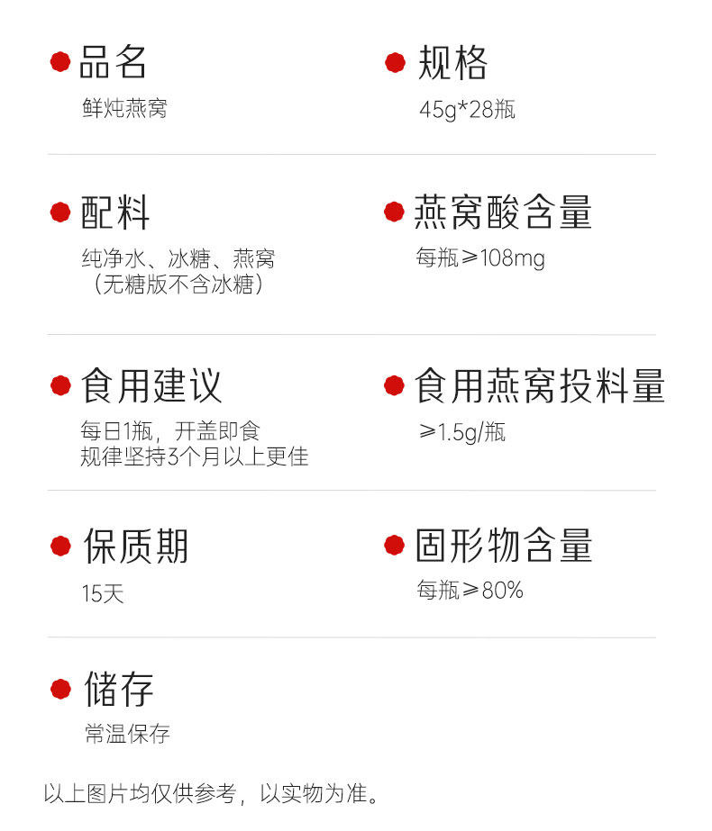 | Dried Bird's Nest Content | 1.5 g |