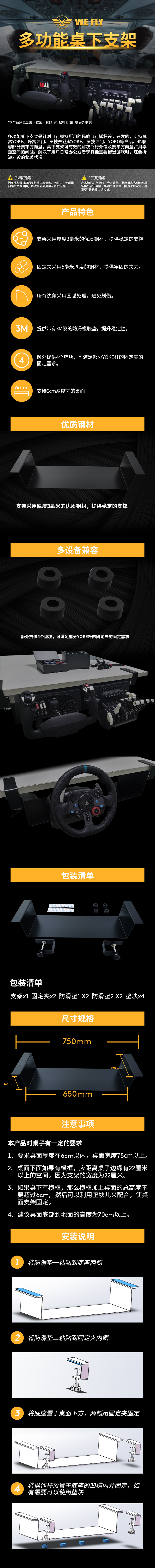 Multifunctional Under-Desk Bracket Supports Honeycomb Yoke Honeycomb Throttle Valve Simulated Flight Rocker Racing Steering Wheel