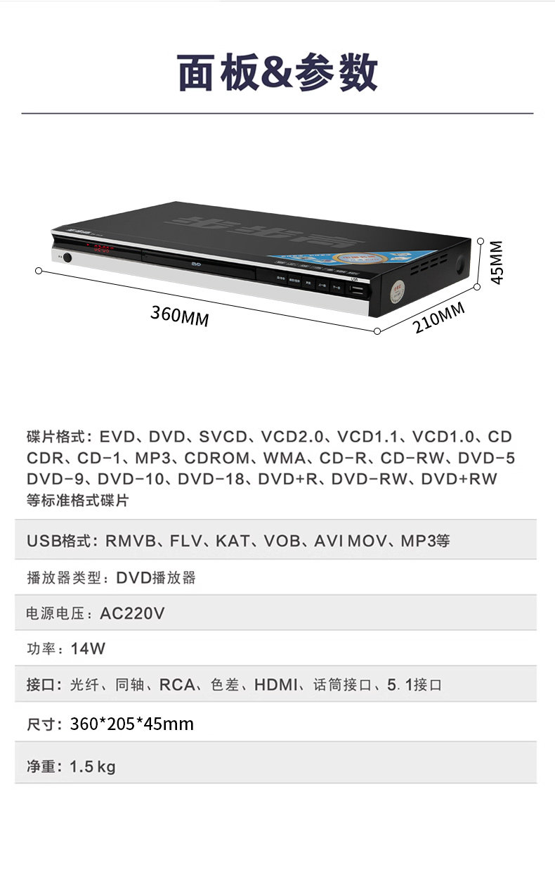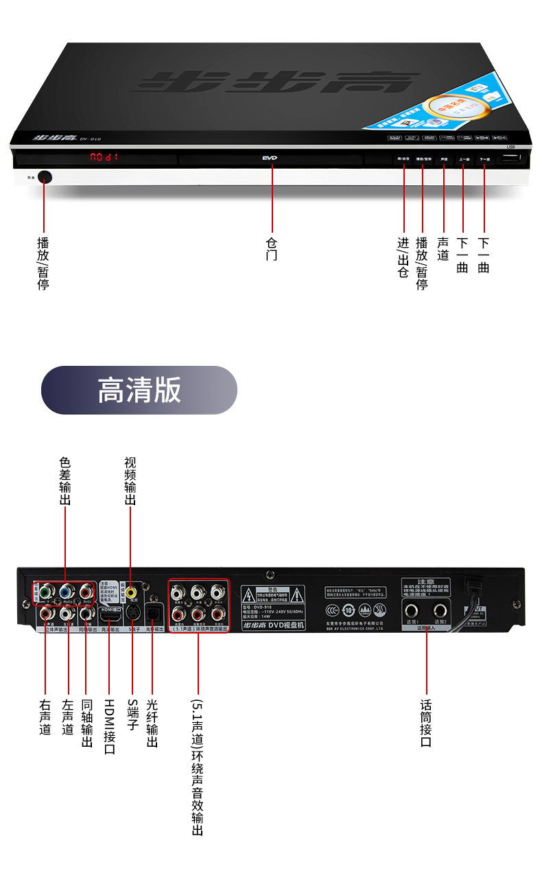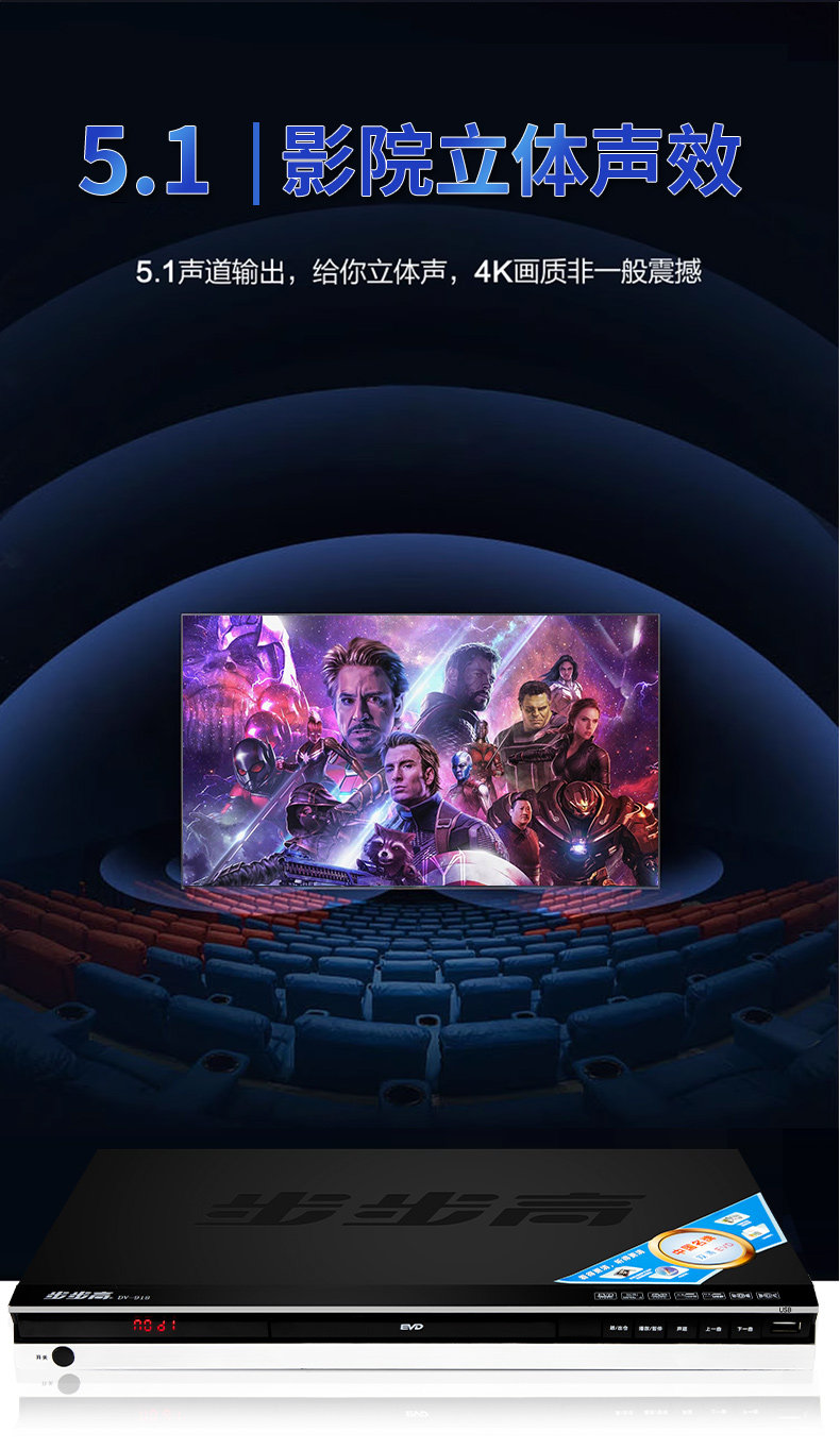 Bbk Dvd Player Dts Disc Full Format High-Definition Vcd Player Bluetooth Mp4 Player Evd