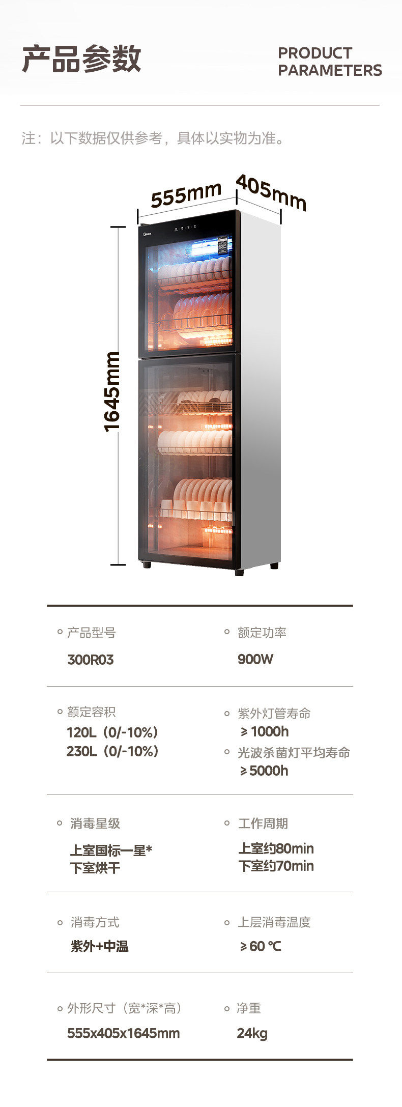 | Disinfection Cabinet Capacity | 350 L |