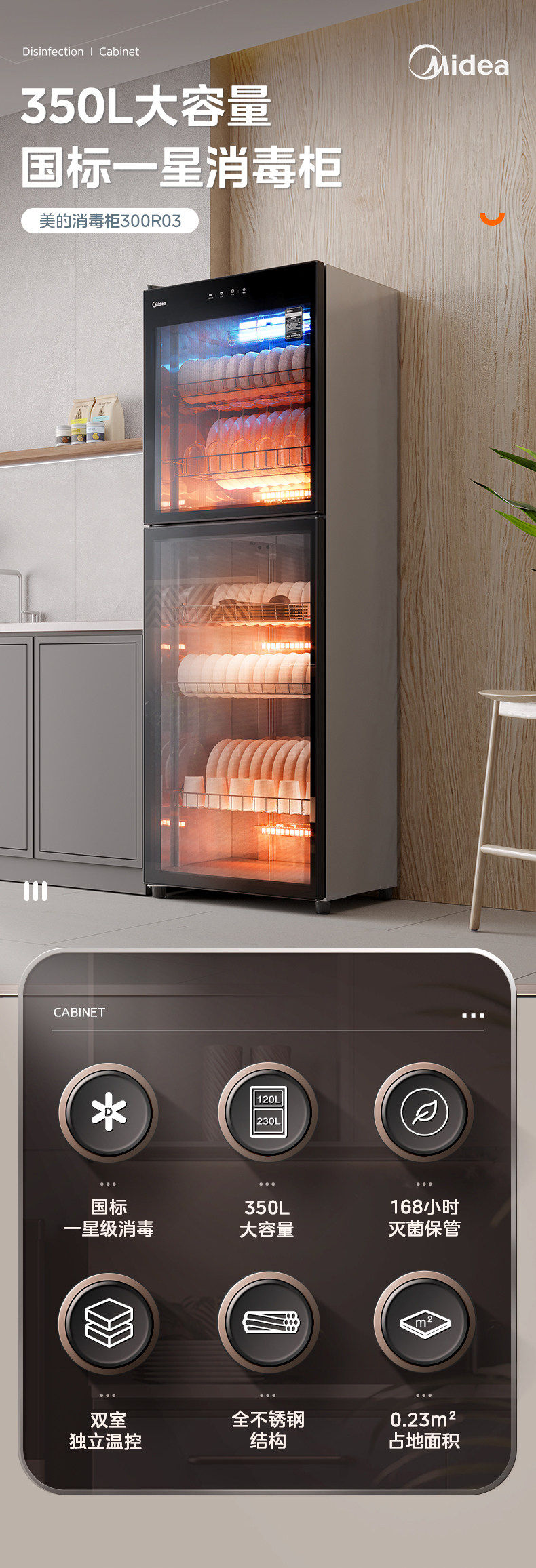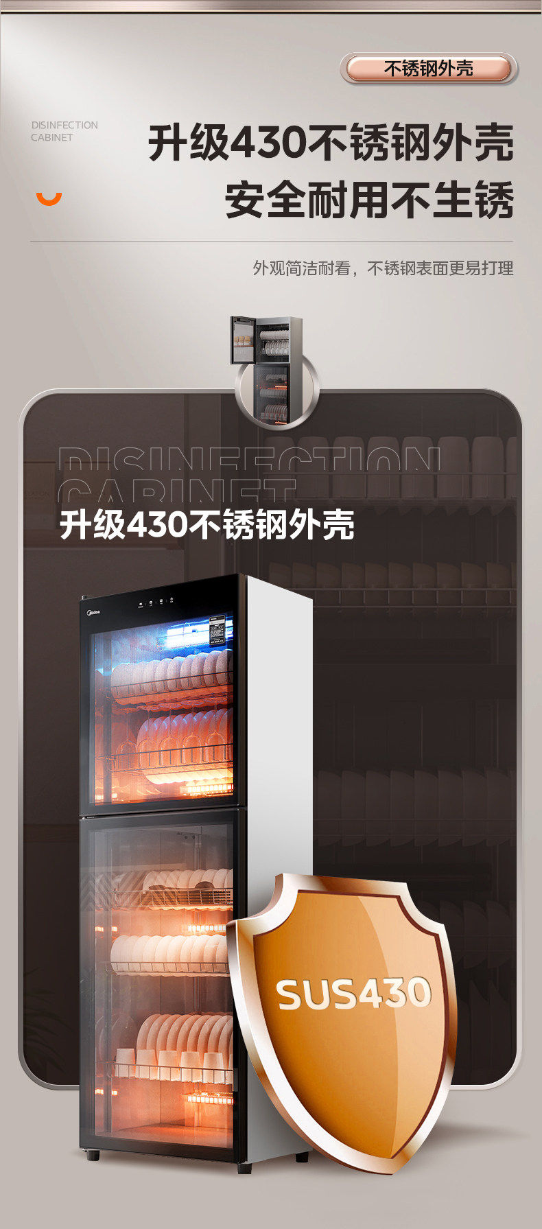Midea Disinfection Cabinet Commercial and Household Use Dish and Cutlery Drying All-In-One Vertical Kitchen Disinfection Cupboard Catering 300R03