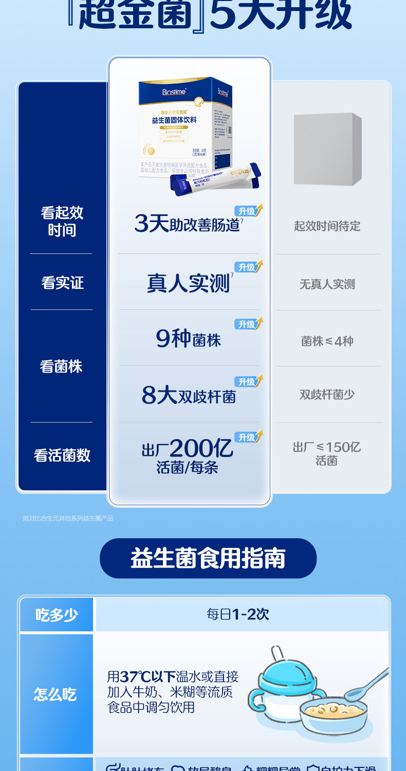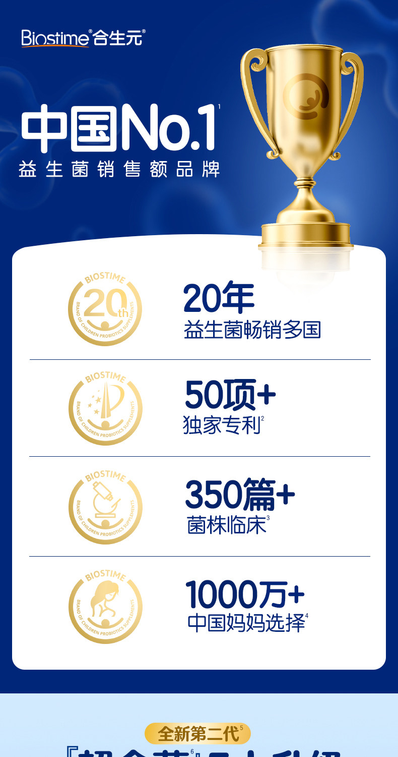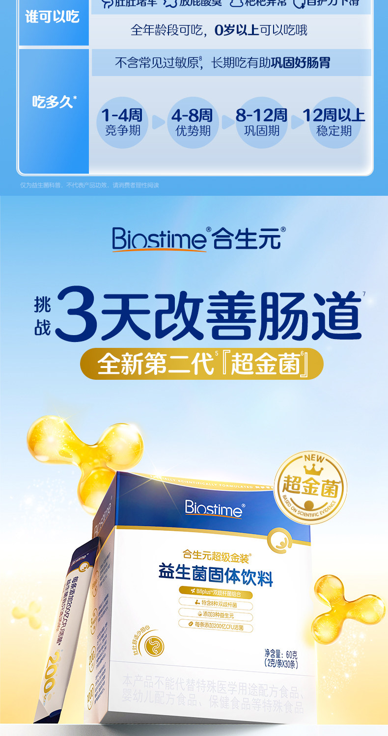 [6000 Billion+ Live Bacteria]Biostime Super Golden Probiotics Bifidobacterium for Infants and Children Improves Gut Health