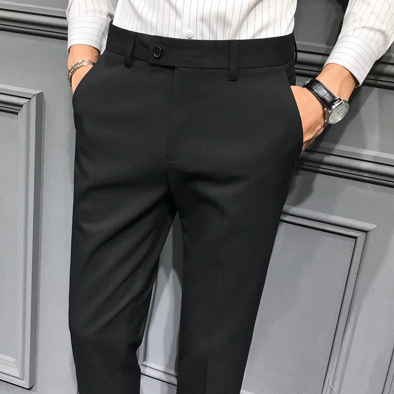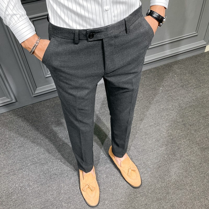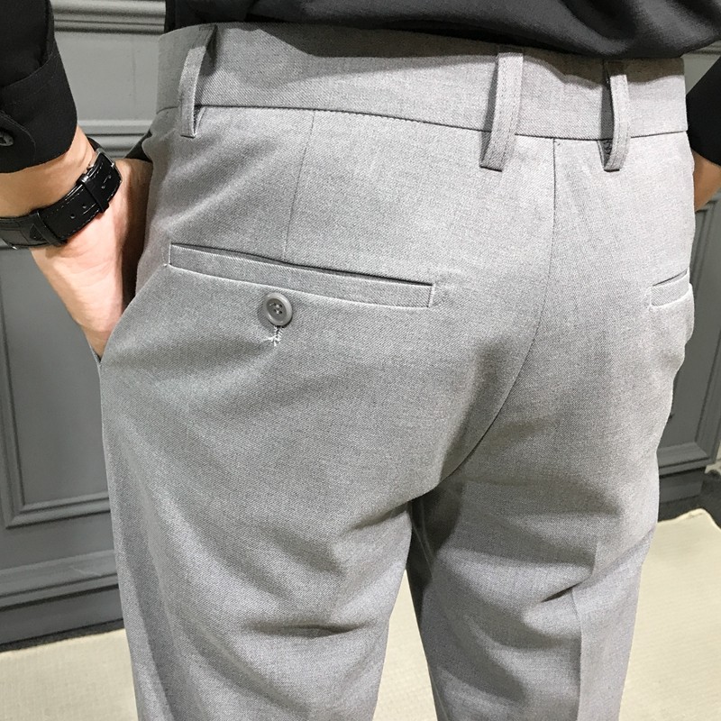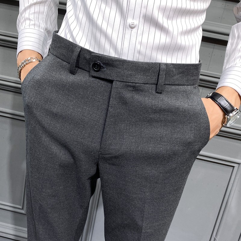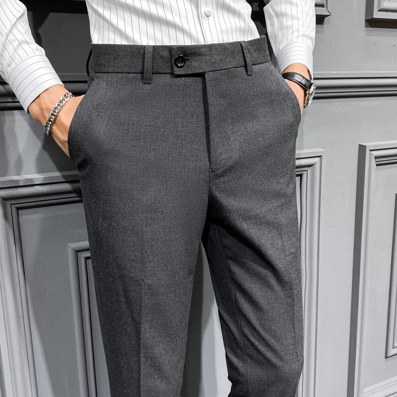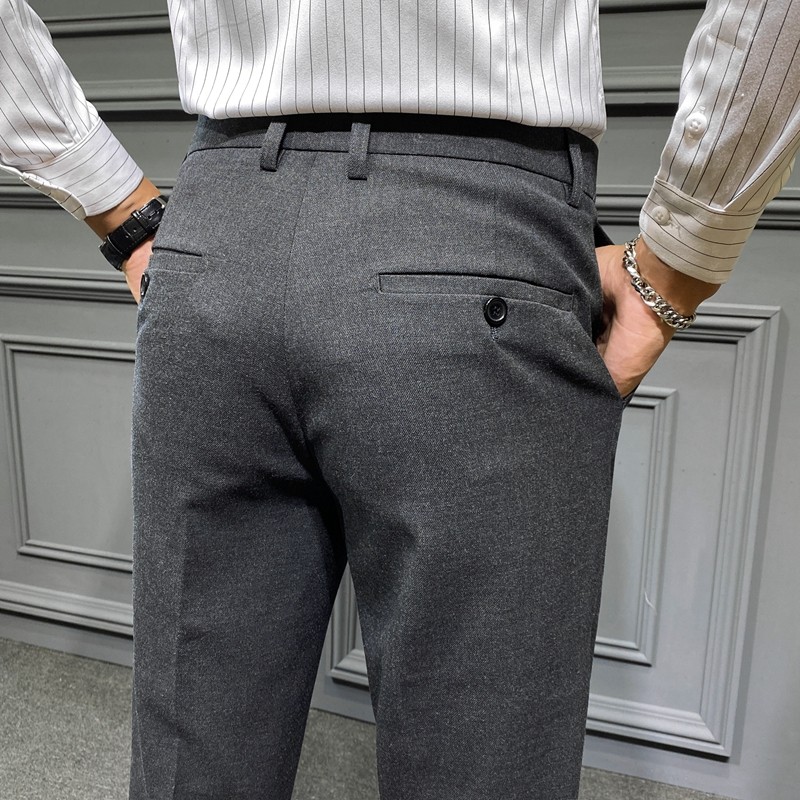 Autumn and Winter Large Size Stretch Trousers for Men, Casual Long Pants, Thick Slim-Fit Straight-Leg Business Formal Suit Pants, Tapered Trendy Style