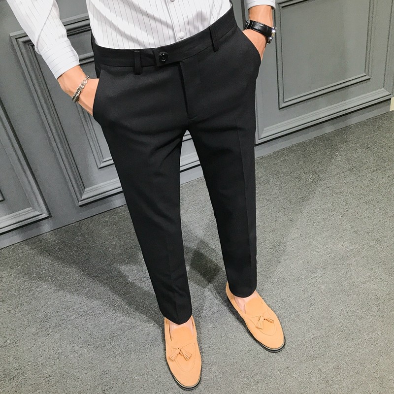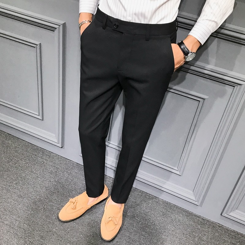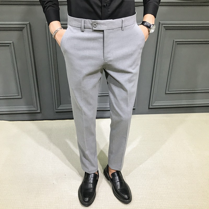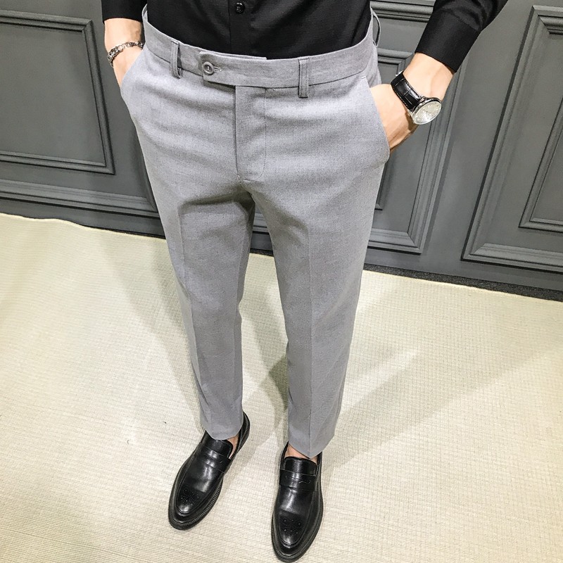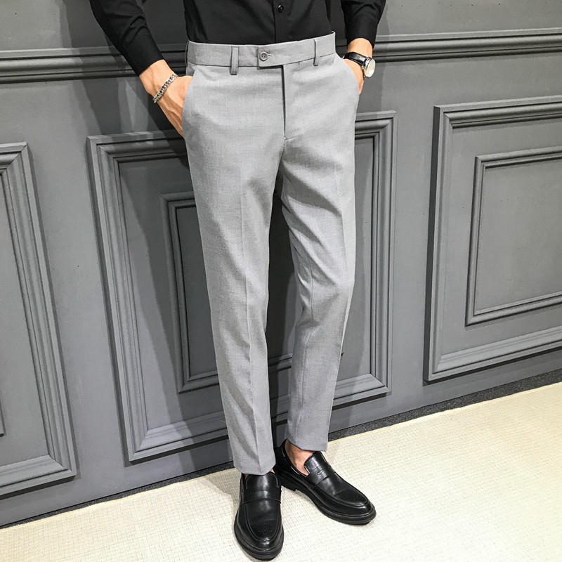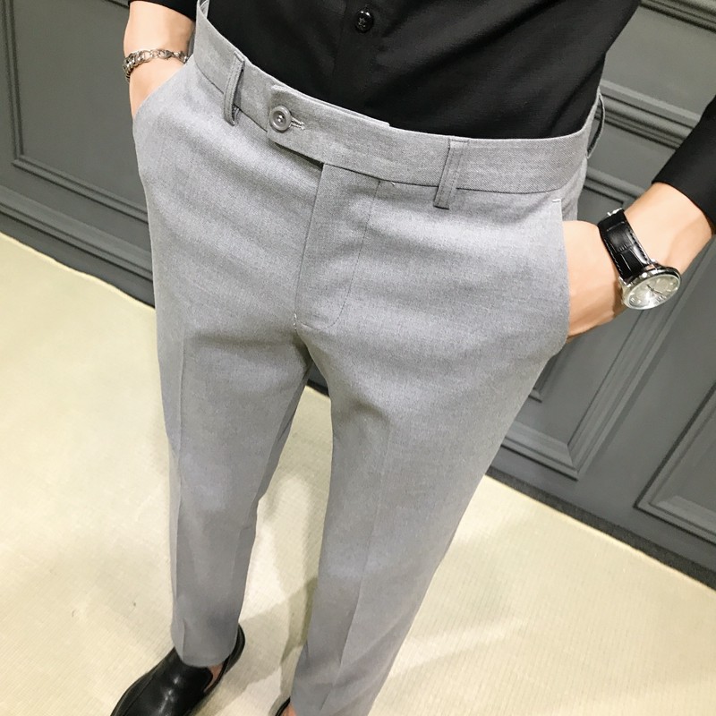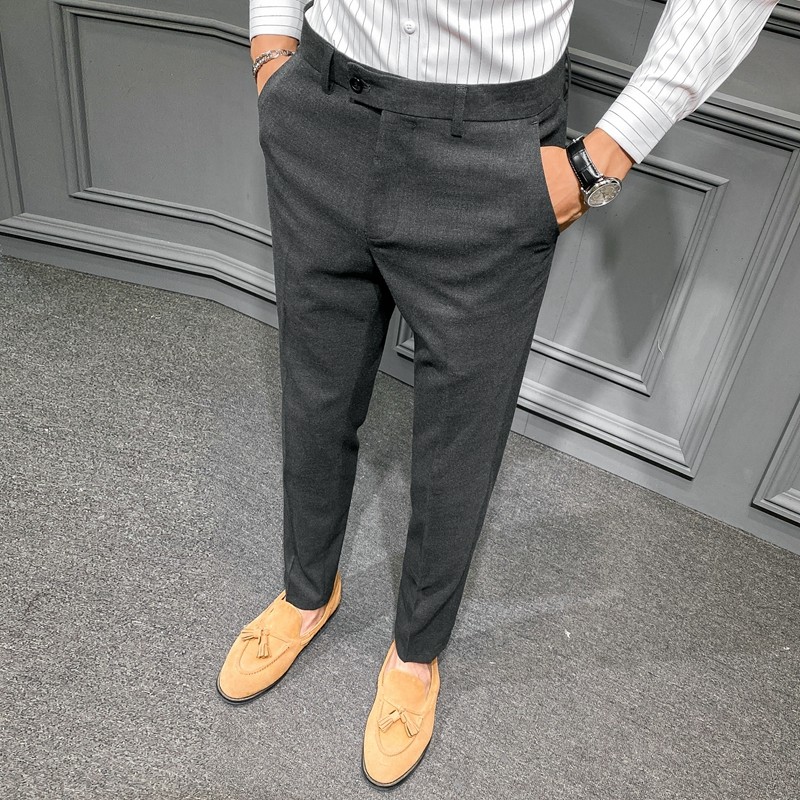 Autumn and Winter Large Size Stretch Trousers for Men, Casual Long Pants, Thick Slim-Fit Straight-Leg Business Formal Suit Pants, Tapered Trendy Style