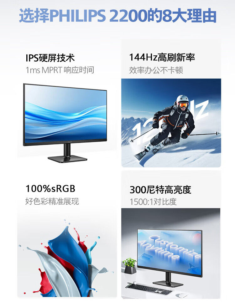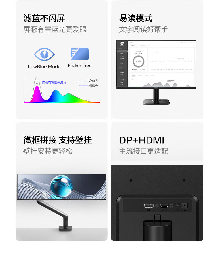 Philips Desktop Computer Monitor 22/24/ 27inch Office Screen Monitoring 2K Lcd Eye Protection Anti-Blue Light
