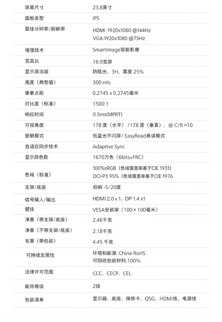| Color Gamut | SRGB≥99% |