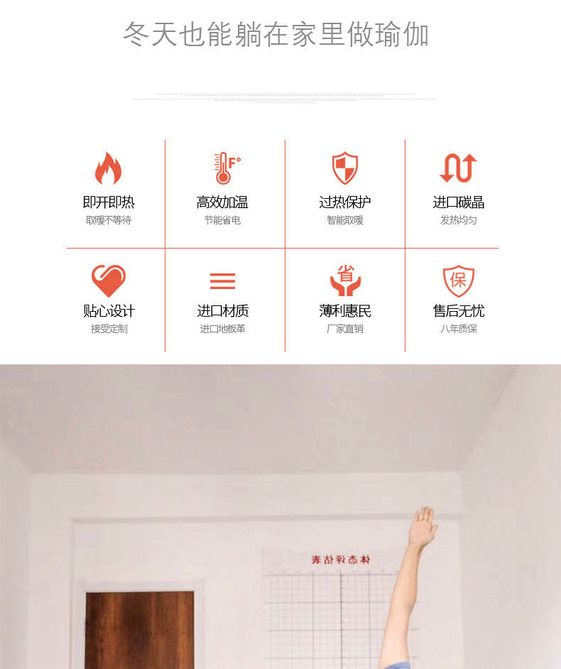 | Color Classification | Single Yoga Heating Pad 80*200cm - Default: Elegant Wood Grain. for Other Colors, Please Contact Us.,Single Yoga Heating Pad, Extra Wide 100*200cm. Default: Elegant Wood Grain. for Other Colors, Please Contact Us.,Single Yoga Heating Pad 120*200cm - Default: Elegant Wood Grain. for Other Colors, Please Contact Us.,Double Yoga Heating Pad 200*200 - Default: Elegant Wood Grain. for Other Colors, Please Contact Us.,Yoga Heating Pad for 3-4 People, 200*300cm. Default: Elegant Wood Grain. Contact Us for Other Color Options.,Yoga Floor Heating Mat for 4-5 People 200*400 Default Elegant Wood Grain Contact Us if You Need Other Colors,Yoga Floor Heating Mat for 5-6 People 200*500 Default Elegant Wood Grain Contact Us if You Need Other Colors,6-7 Person Yoga Floor Heating Mat 200*600, Default: Elegant Wood Grain. Contact Us for Other Color Options.,150*200 Single Yoga Mat with Heating Pad - Living Room Home Use - Default: Elegant Wood Grain. Contact Us for Other Color Options.,180*200 Double Yoga Floor Heating Mat for Living Room and Home Use,50*150cm Dance Studio Kids Yoga Floor Heating Mat - Default: Elegant Wood Grain. for Other Colors, Please Contact Us. |