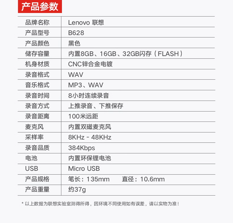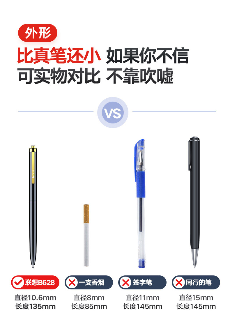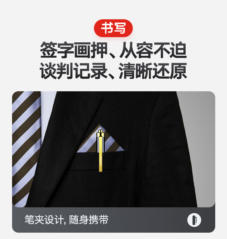 Lenovo Pen-Shaped Voice Recorder Professional High-Definition Noise Reduction for Office and Class Use Student Recording Device Portable Small