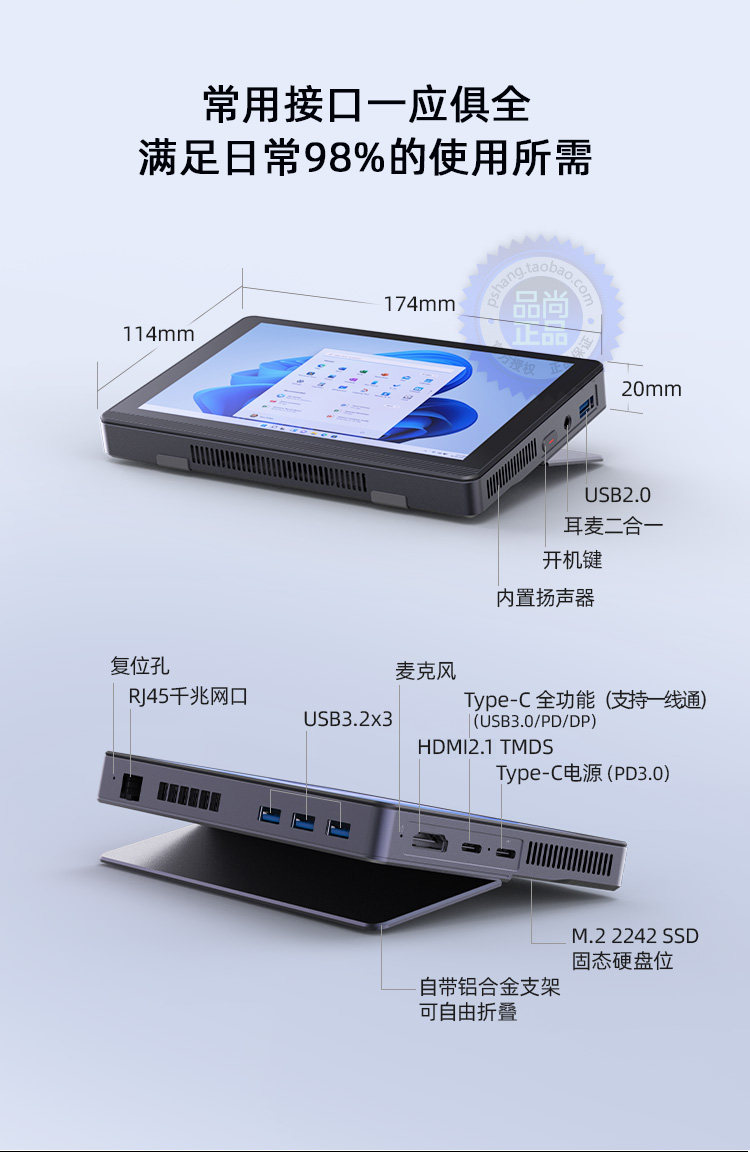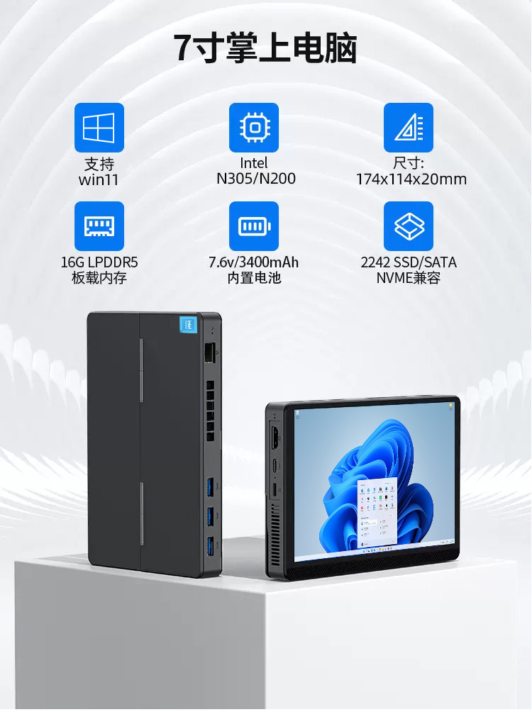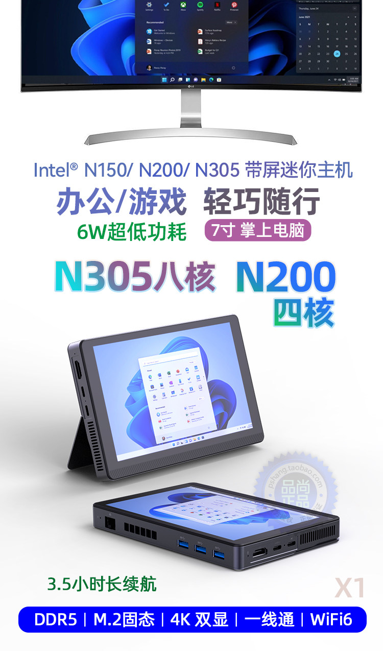 12Th Generation N305 Mini Host 7inch Touch Screen Win11 Office N200 Gaming Micro N150 Tablet Mini Computer