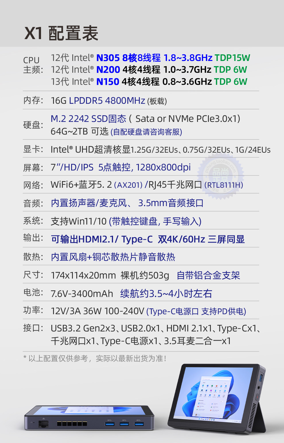 | Package Type | N305 Eight-Core 7inch Touch Screen/Long Battery Life/Wifi6,N200 Quad-Core 7inch Touch Screen/Long Battery Life/Wifi6,N150 Quad-Core 7inch Touch Screen/Long Battery Life/Wifi6 |