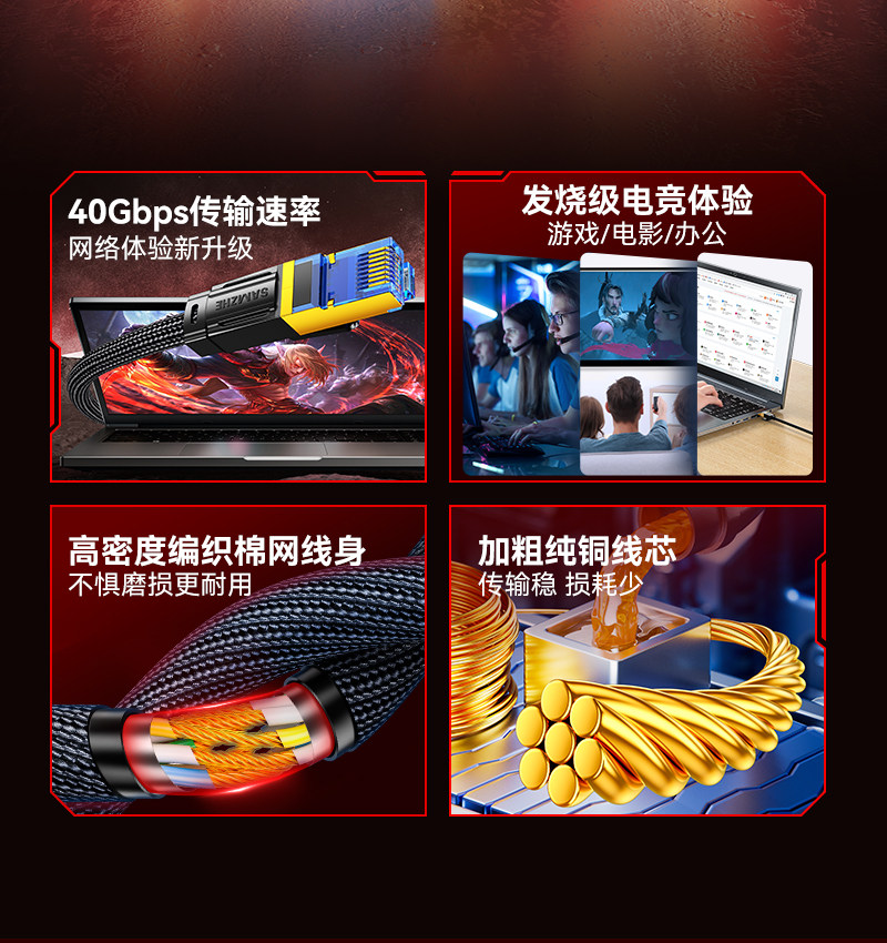 Color Classification [Five-Fold International Certification] Quality Is Above Industry Standards,Category 8 10 Gigabit [Upgraded Braided Model] Thickened Pure Copper Core | Gold-Plated Shielded Head | Double-Layer Aluminum Foil + Ground Wire,Category 8 10 Gigabit [Bold Version] Thickened Pure Copper Core | Gold-Plated Shielding Head | Double-Layer Aluminum Foil + Ground Wire,Category 8 10 Gigabit [Bold E-Sports Model] Bold Pure Copper Core | 50U Gold-Plated Shielded Head | Double-Layer Aluminum Foil + Ground Wire,Category 7 10 Gigabit [Upgraded Braided Model] Thickened Pure Copper Core | Nickel-Plated Shielding Head | Double-Layer Aluminum Foil + Ground Wire,Cat.6A 10 Gigabit Ethernet Cable [Upgraded Braided Design] - Reinforced Pure Copper Core | Flexible and Bend-Resistant | Enhanced Durability,Cat.6A 10 Gigabit [Home Use] Heavy-Duty Pure Copper Core | Nickel-Plated Shielded Connector | High-Speed and Stable,Cat.6A 10 Gigabit Ethernet Cable [Classic] - Reinforced Core | Faster, More Stable Network Speed | High-Speed and Reliable Performance,Category 6 Gigabit [Professional Model] Thickened Wire Core | Metal Shielded Head | Faster and More Stable,Category 6 Gigabit [Home Shielded Edition] - Reinforced Pure Copper Core | Metal Shielded Connector | High-Speed and Stable