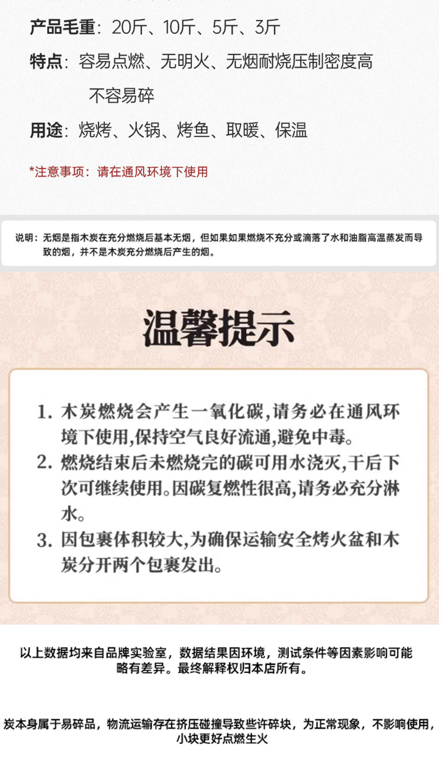 | Color Classification | Look for the Top-Rated and Best-Selling Items! (This Item Is for Description Purposes Only, Do Not Purchase.),Does Not Contain Harmful Substances Such as Coal/Sulfides/Adhesives,Zero Addition of Pure Charcoal - 2.5kg {Comes with Charcoal Clip and Ignition Block},Cost-Effective Recommendation❤Zero Addition of Pure Charcoal - 5kg {Comes with Charcoal Clip and Ignition Block},Zero Addition of Pure Charcoal - 10kg {Comes with Charcoal Clip and Ignition Block},Zero Addition of Pure Charcoal - 20kg {Comes with Charcoal Clip and Ignition Block},Zero Addition of Pure Charcoal - 1.5kg {Comes with Charcoal Clip and Ignition Block},Zero Addition of Pure Charcoal - 1.5kg {Ignition Block},Bamboo Charcoal- 1.5kg {Ignition Block},Bamboo Charcoal- 1.5kg {Comes with Charcoal Clip and Ignition Block},Bamboo Charcoal- 2.5kg {Comes with Charcoal Clip and Ignition Block},Bamboo Charcoal- 5kg {Comes with Charcoal Clip and Ignition Block},Bamboo Charcoal- 10kg {Comes with Charcoal Clip and Ignition Block},[Lighting in 2 Seconds Without Waiting] 1 Box of Quick-Burning Fruit Charcoal (12 Pieces) Can Be Used for Barbecue for 2 People at a Time,[Light up in 2 Seconds Without Waiting] 2 Boxes of Quick-Burning Fruit Charcoal (24 Pieces) Can Be Used for Barbecue for 4 People at a Time,45,46,47,48,49,50,51,52,53,54,55,56,57,11,12,13,14,15,16,18,19,20,21,22,23,24,25,26,27,28,29,30,31,32,33,34,35,36,37,38,39,40,41,42,43,44,58,59,60 |