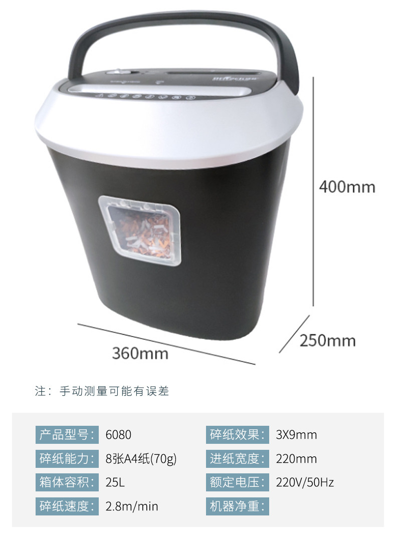 | Shredding Capacity | Less Than 10 Sheets/Time |