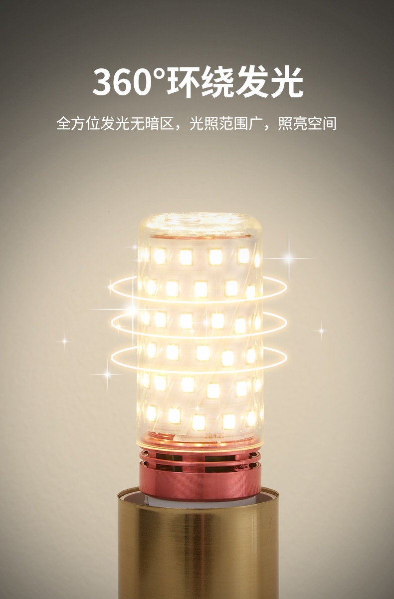 Led Light Bulb Energy-Saving Lamp E14 Small Screw Base E27 Corn Lamp Home Lighting Super Bright Chandelier Light Source Three-Color Dimming