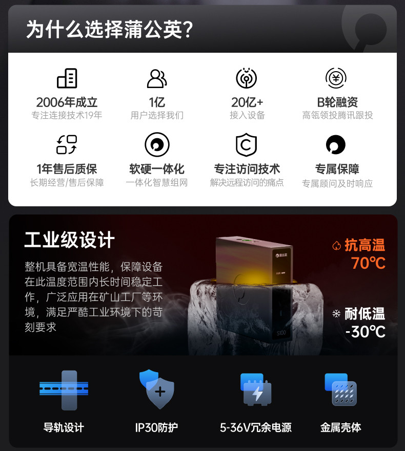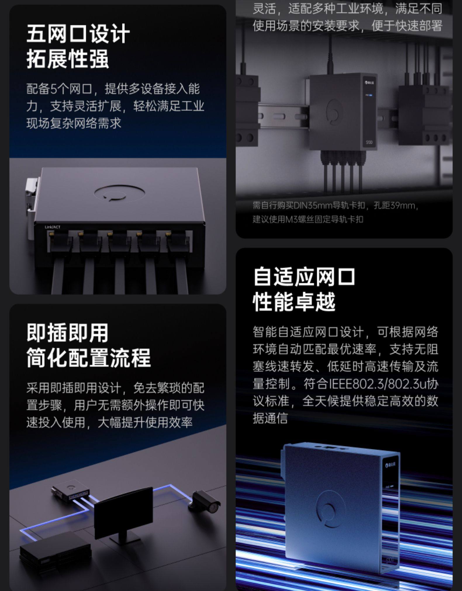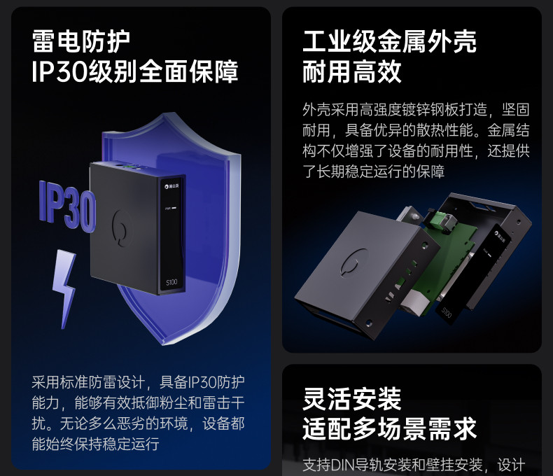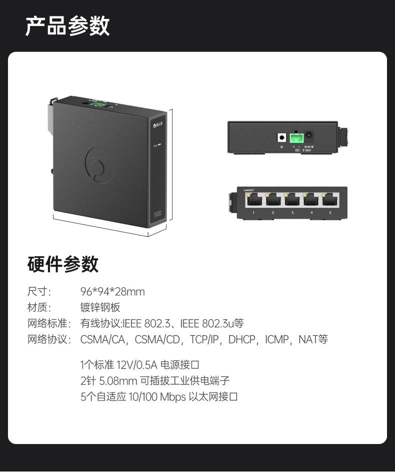 Dandelion Industrial Grade Switch S100 Ethernet 5-Port Rail Router Monitoring Network Distribution Network Cable Branch Converter