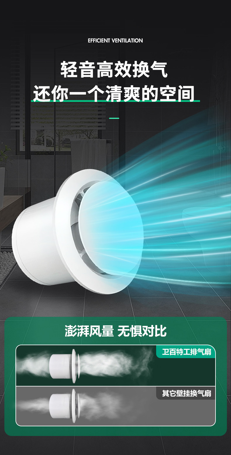 Bathroom Exhaust Fan, Powerful and Quiet, Household Ventilation Fan, Two-Way Wall-Mounted Toilet Extractor Fan, Kitchen Air Inlet Fan