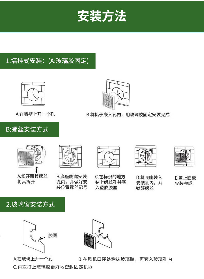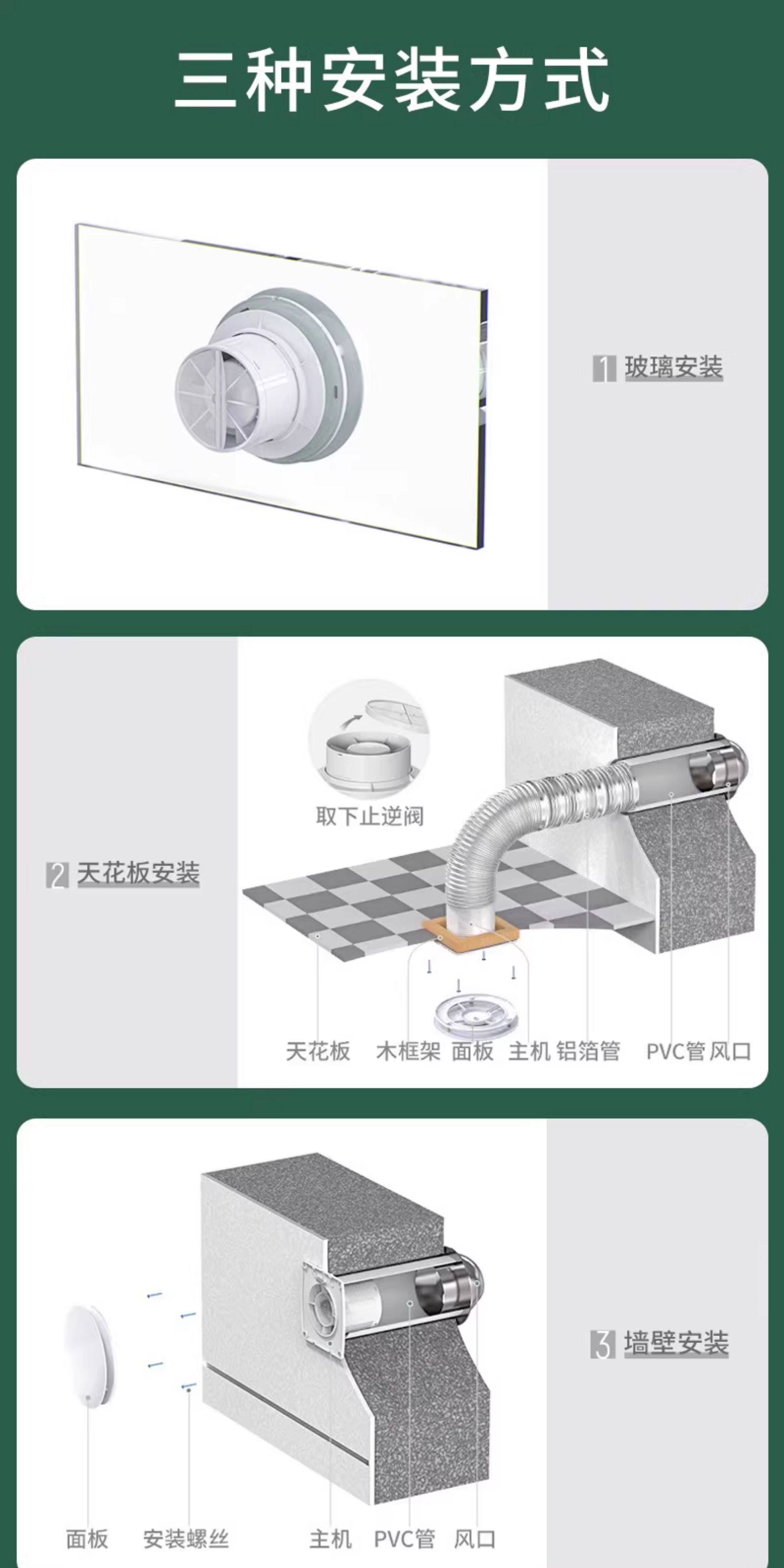 | Installation Method | Ceiling Type,Window Type,Conduit Exhaust Type,Conduit Air Inlet Type,Wall Mounted,Pipe Type |