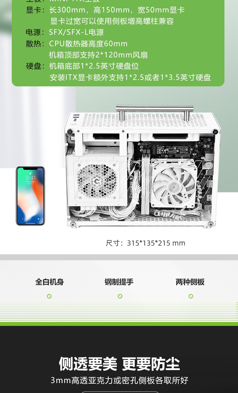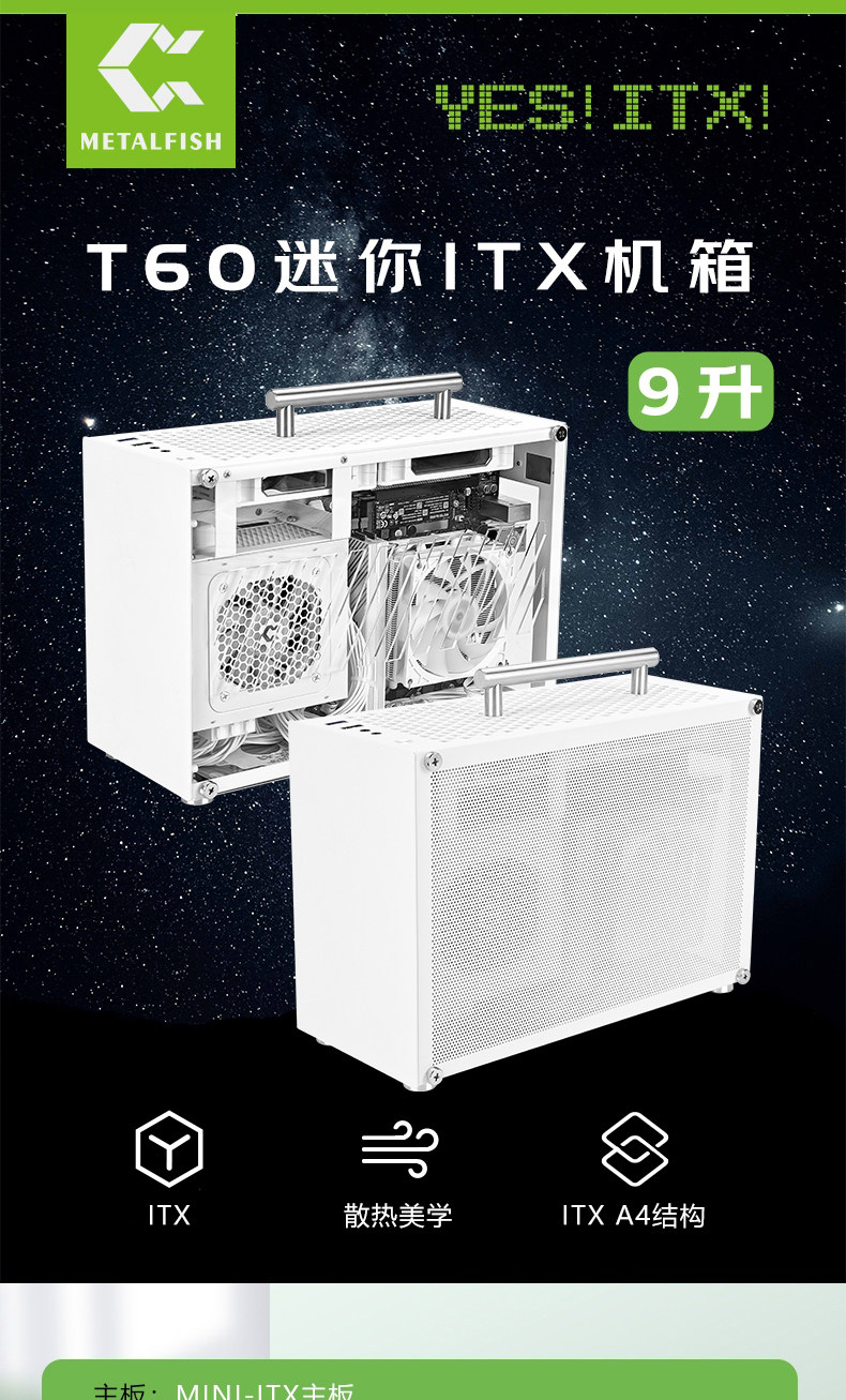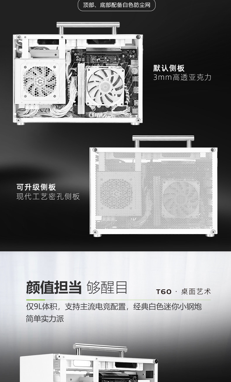 Fish Nest T60 Chassis Mini Itx Long Graphics Card Satchel Satchel Side Transparent Sfx Power Supply White Desktop Small Empty Chassis