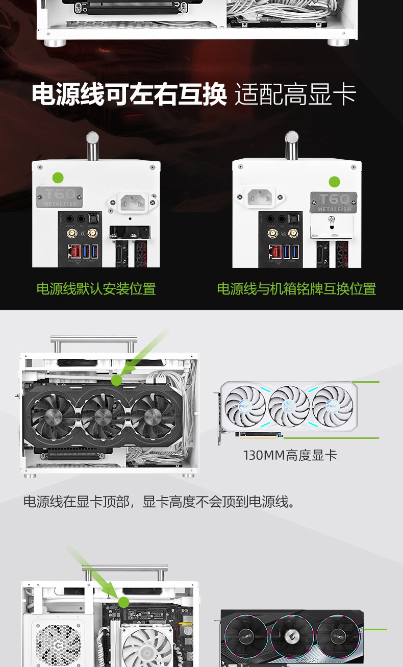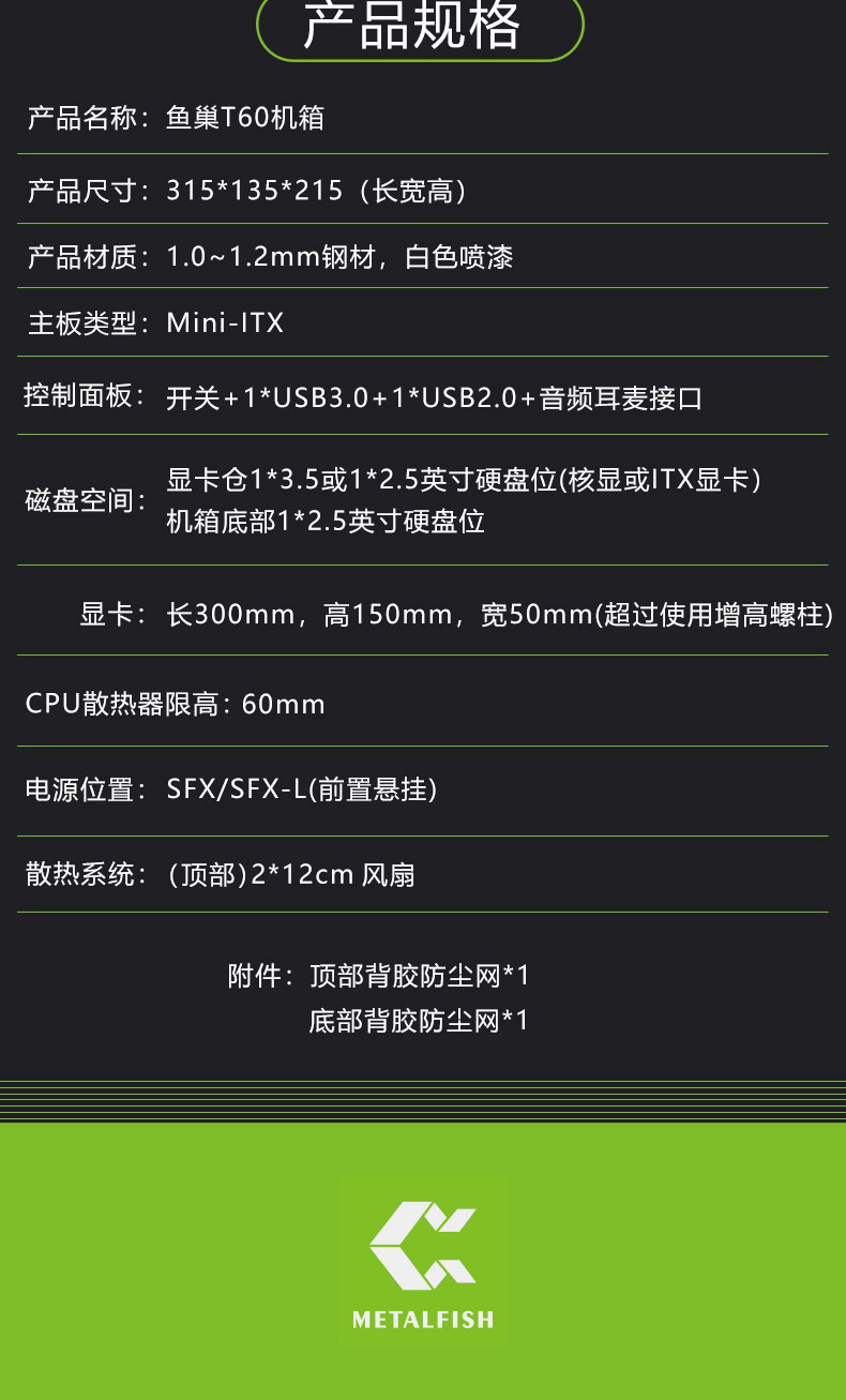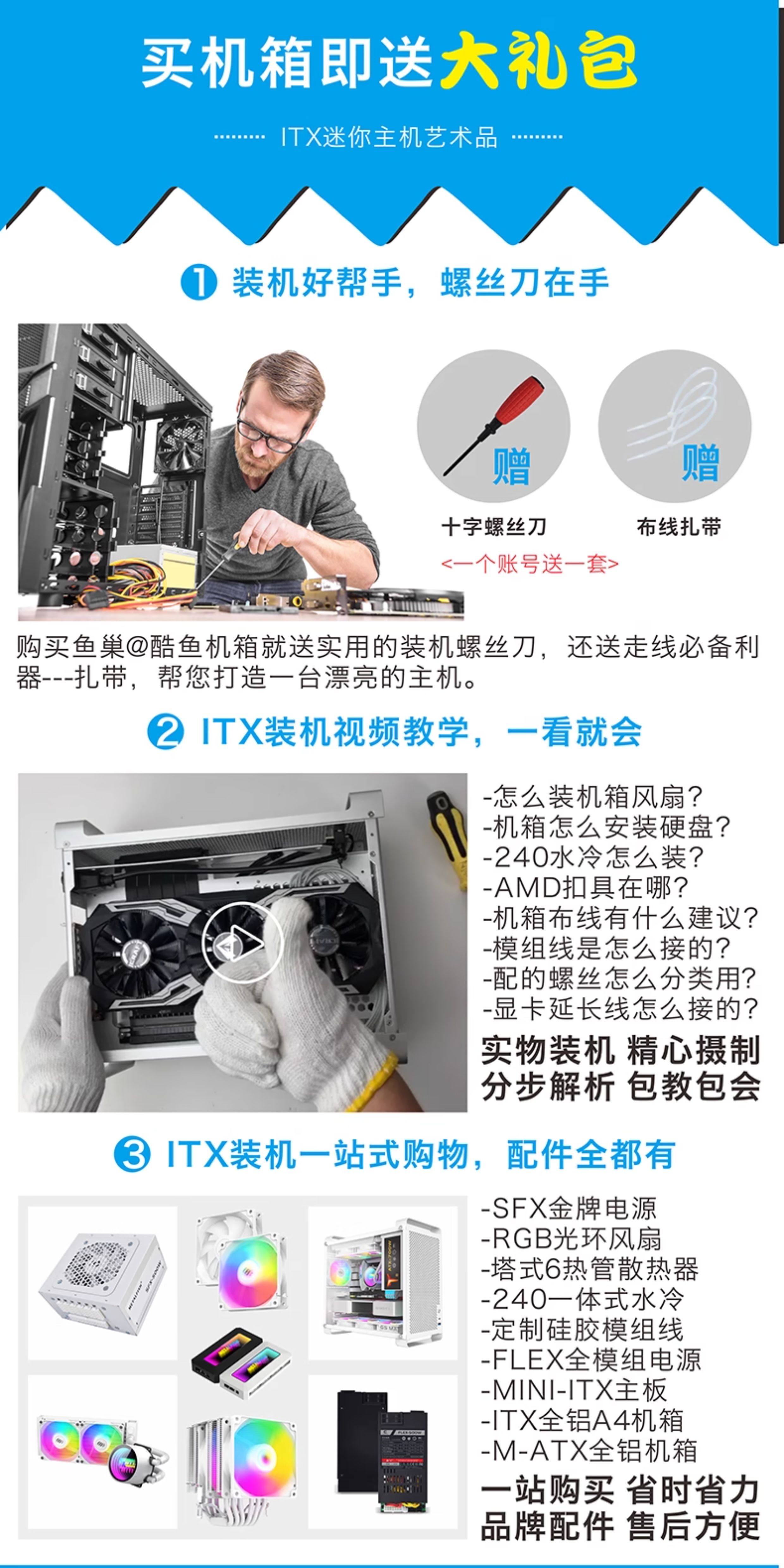 Fish Nest T60 Chassis Mini Itx Long Graphics Card Satchel Satchel Side Transparent Sfx Power Supply White Desktop Small Empty Chassis