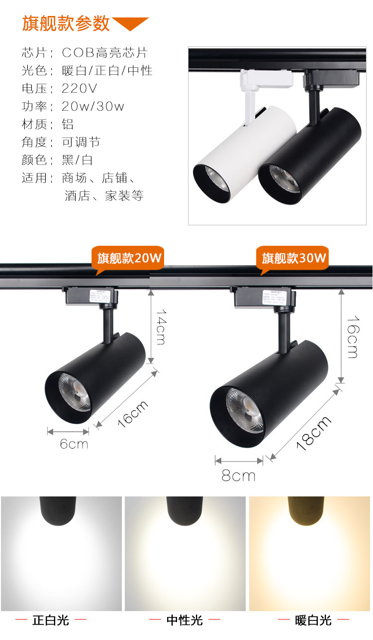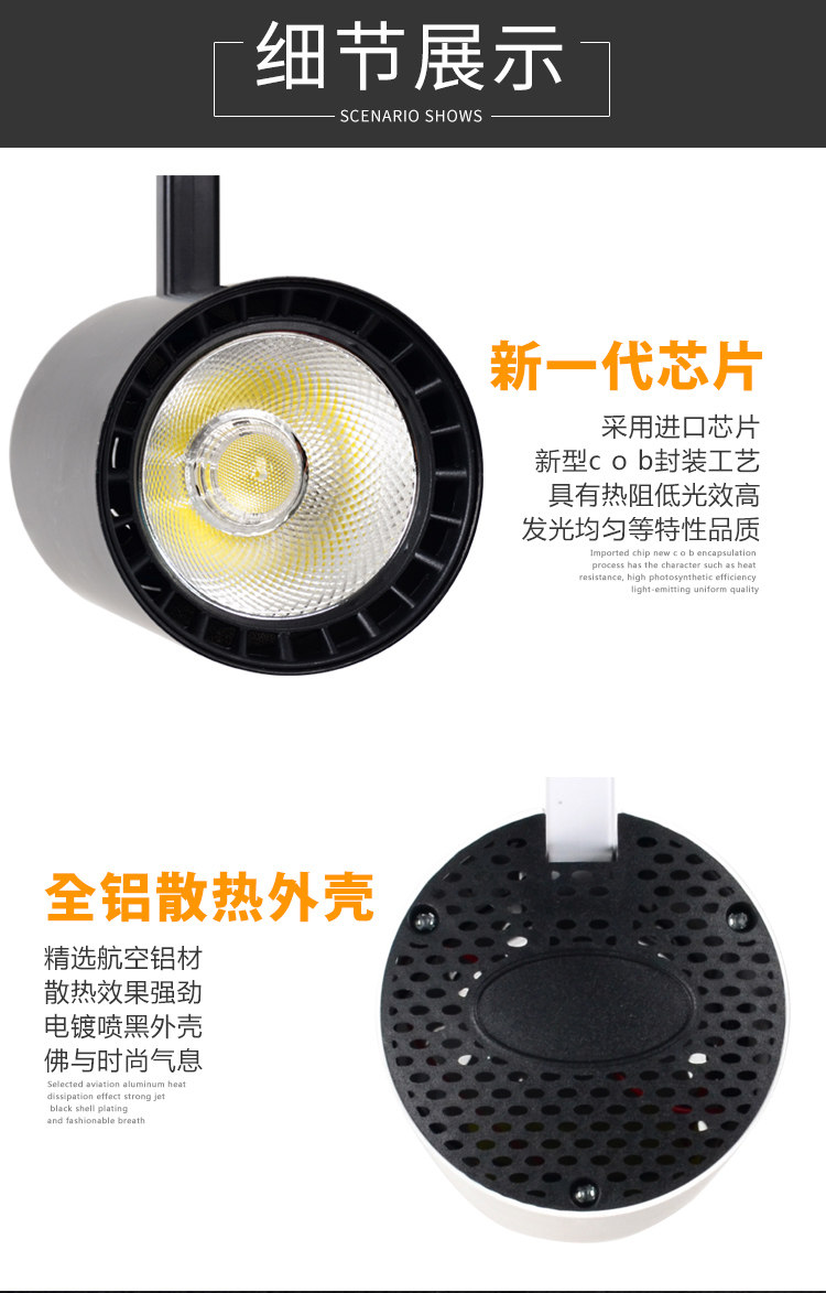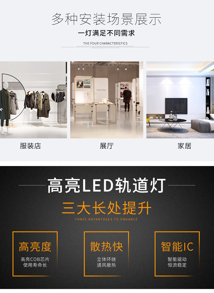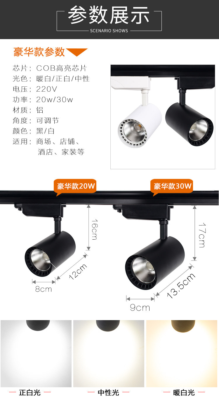 Led Track Spotlight Clothing Store 20W30W Surface Mounted Rail Light Background Wall Exhibition Hall Energy-Saving High-Brightness Cob Spotlight