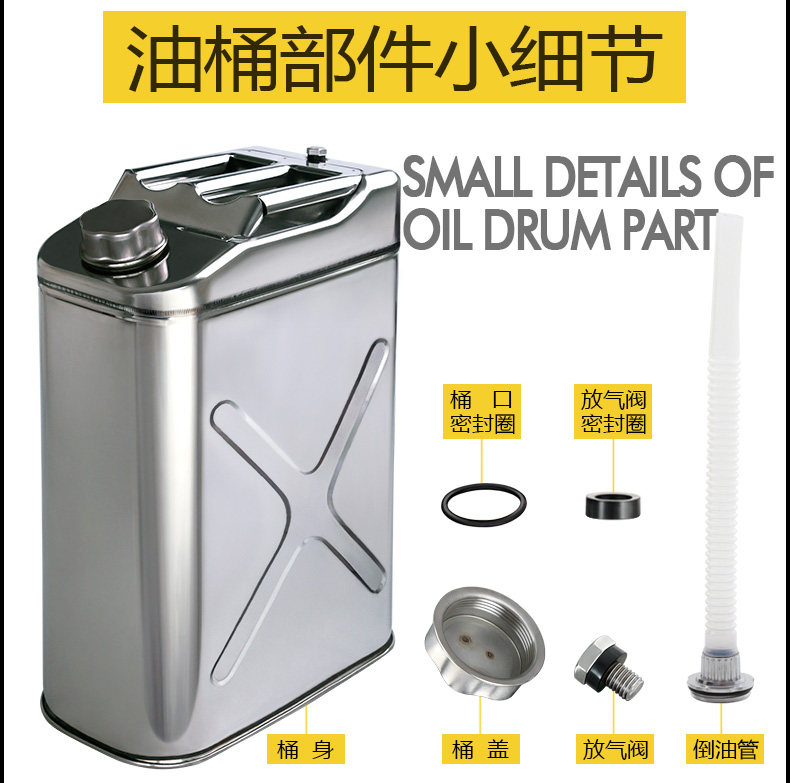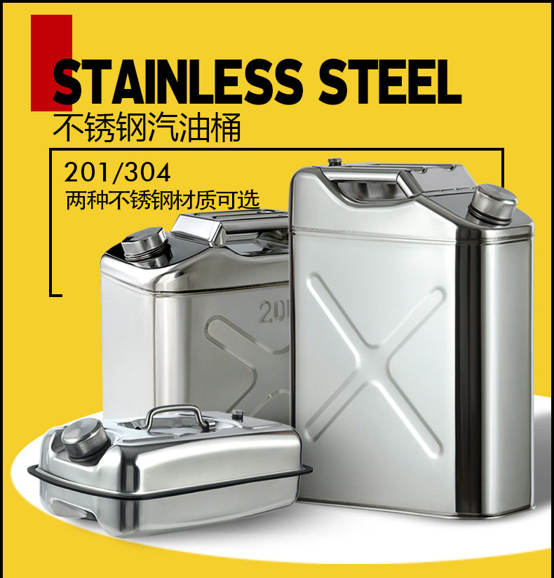 Thickened 304 Stainless Steel Oil Drum Gasoline Drum 30 Liters 20 Liters 10 Liters 5L Diesel Can Refueling Drum Iron Drum Fuel Tank
