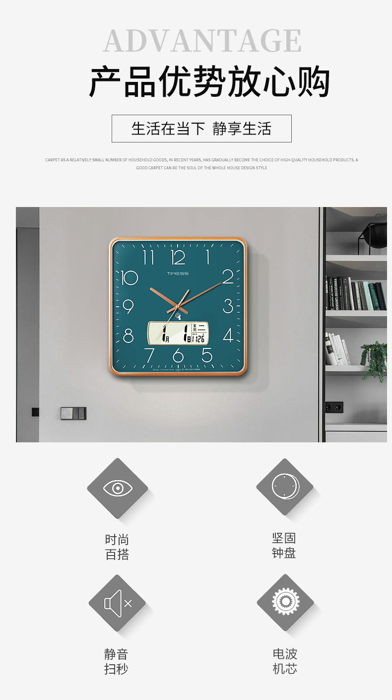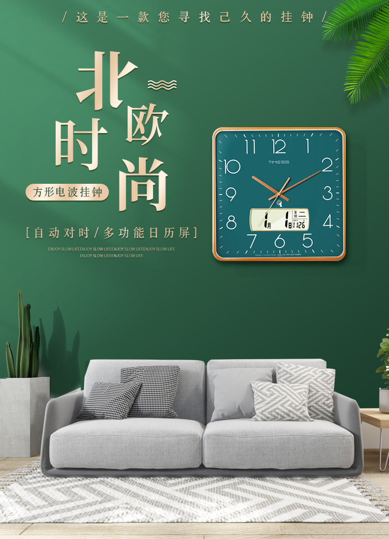 Timess Radio-Controlled Clock Wall Clock for Living Room Home Use Stylish Luminous Clock Wall-Mounted Creative Perpetual Calendar Light Luxury Wall Clock
