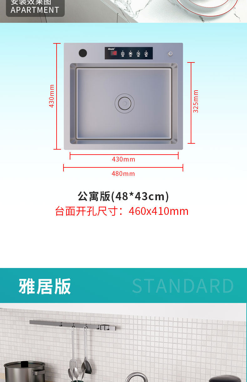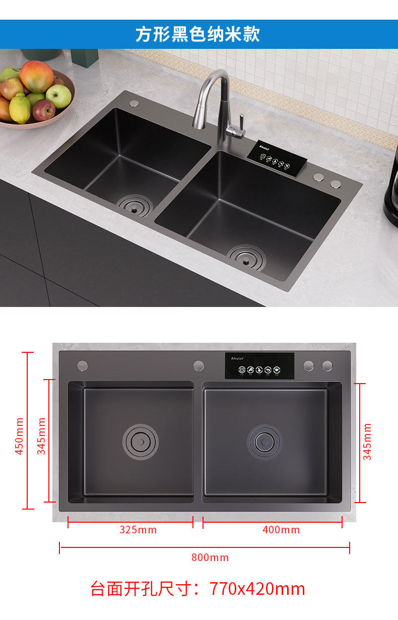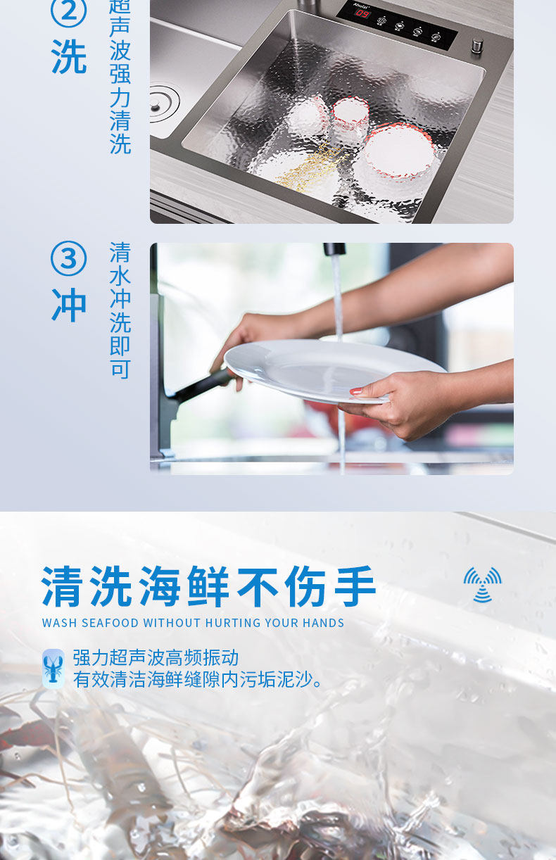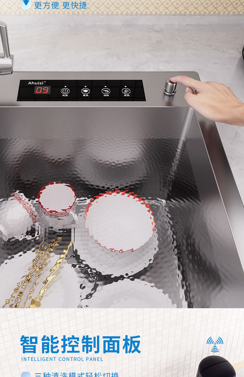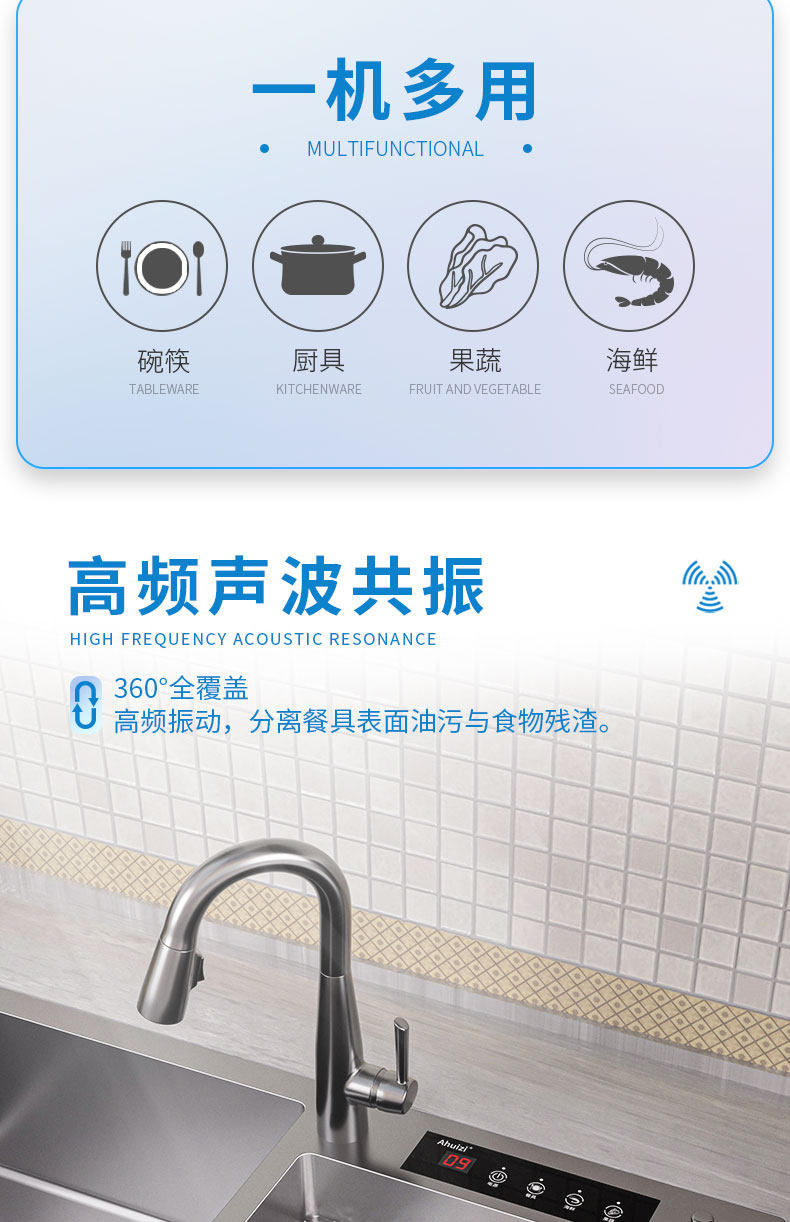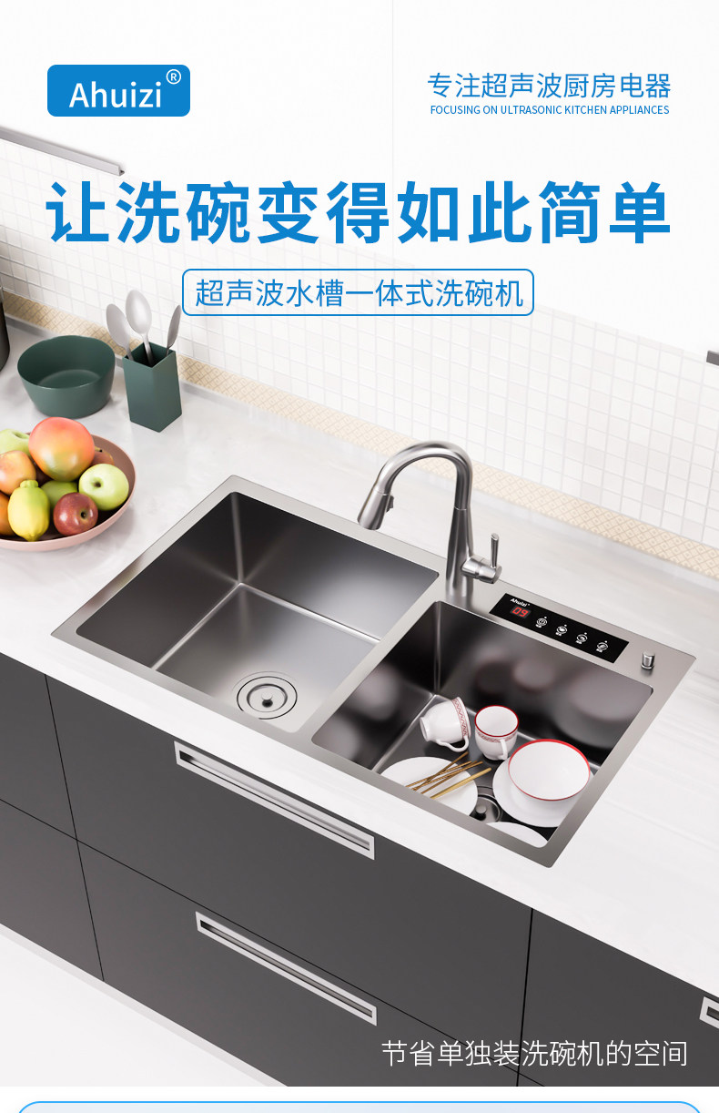 Ultrasonic Sink Integrated Dishwasher Fully Automatic Household Double-Tank Stainless Steel Vegetable Washing Multi-Functional Cleaning Machine