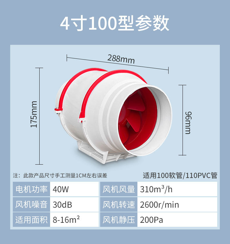 Two-Way Duct Fan, Powerful Non-Silent Exhaust Fan, Ventilation Fan, Bathroom Exhaust Fan, Household Kitchen Exhaust Fan