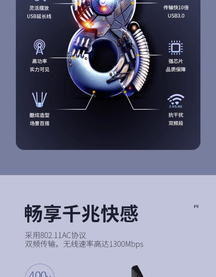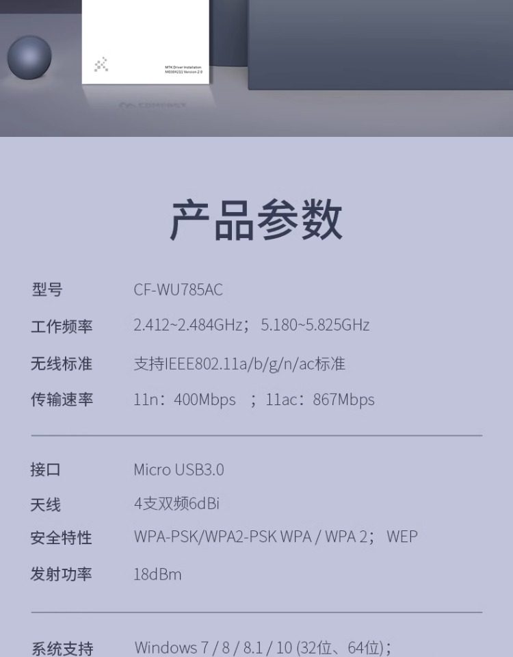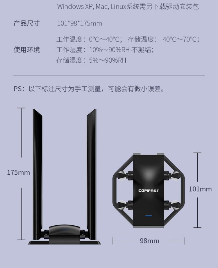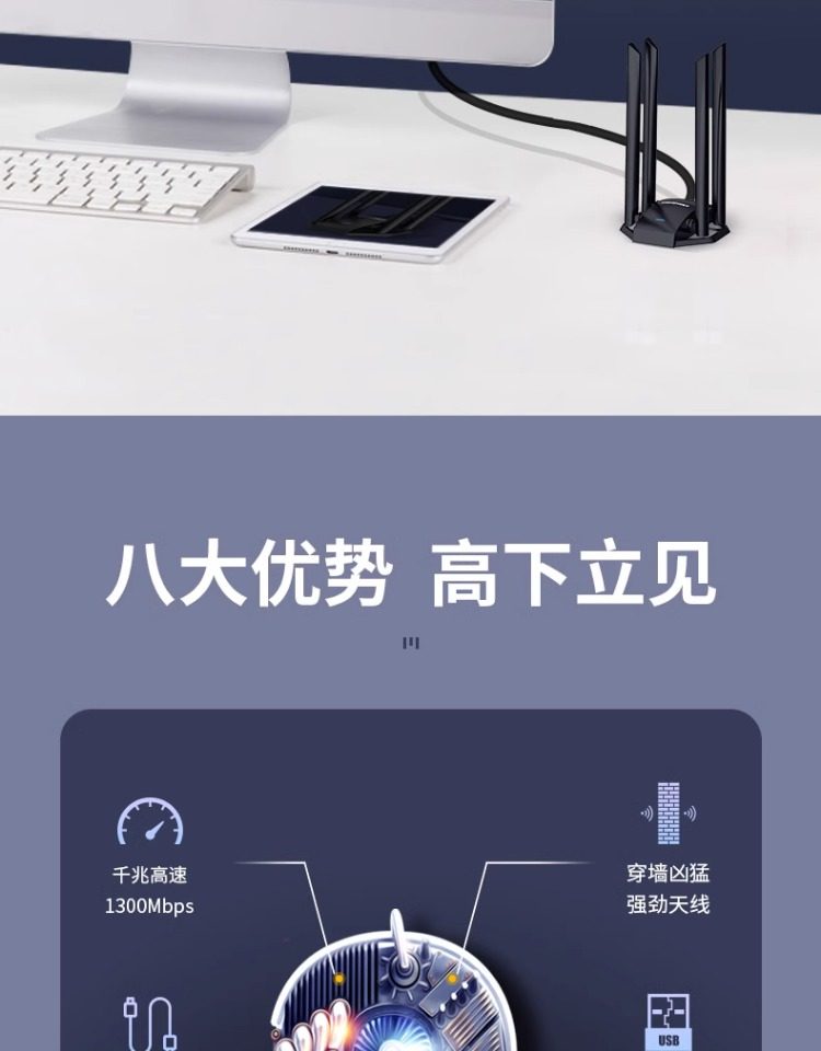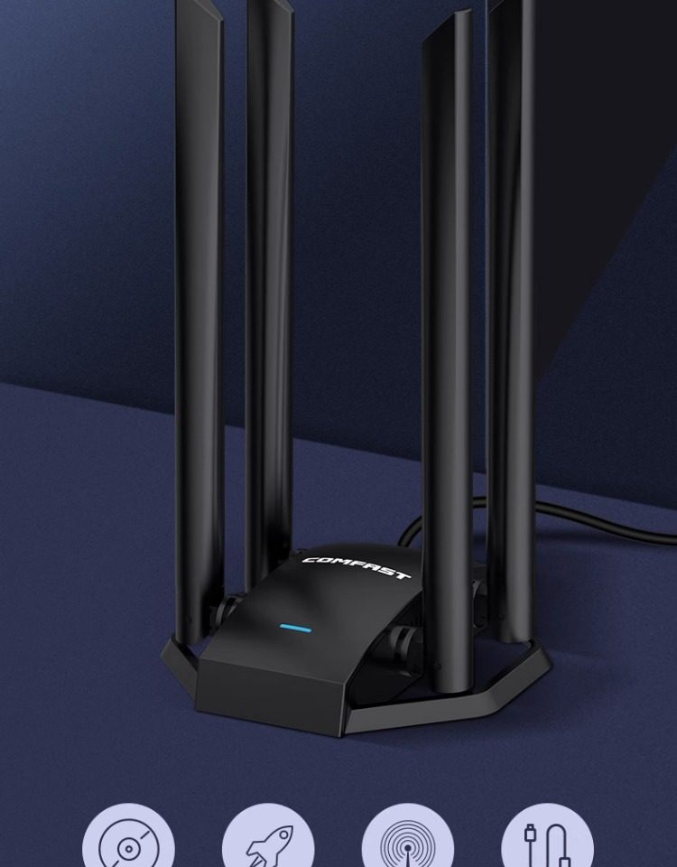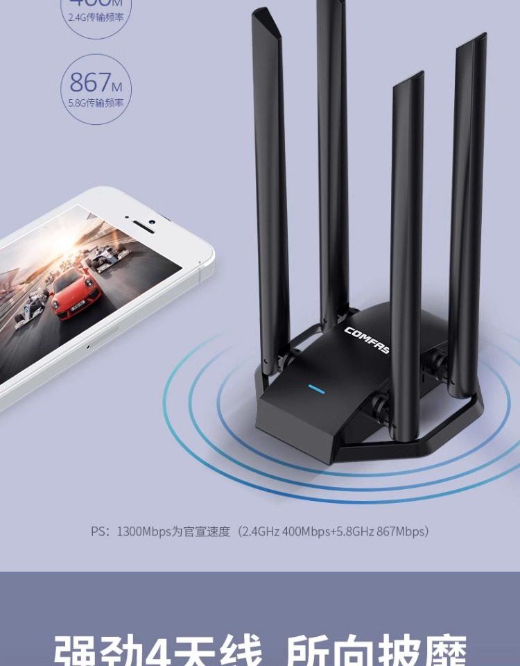 Comfast Wireless Network Card Desktop 1300m Dual-Band Through-Wall Desktop Computer Wifi Receiver External Driver-Free High-Power USB Interface Notebook Gigabit Wireless Network Transmitter