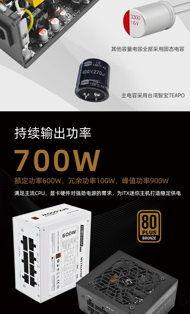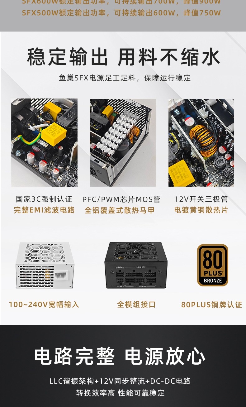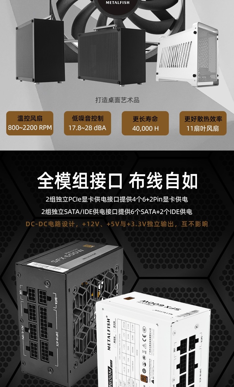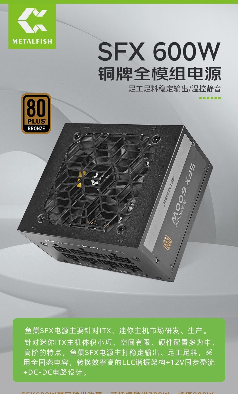 Fish Nest White Sfx Power Supply, Bronze-Rated, Fully Modular, Rated 600W, Ultra 500W, Mini Itx Small Case Wide-Range Power Supply