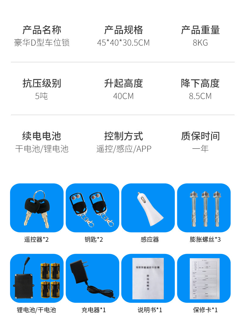 Car Parking Space Lock, Remote Control Smart Thickened Anti-Collision Automatic Lifting Electric Induction Electronic Bluetooth