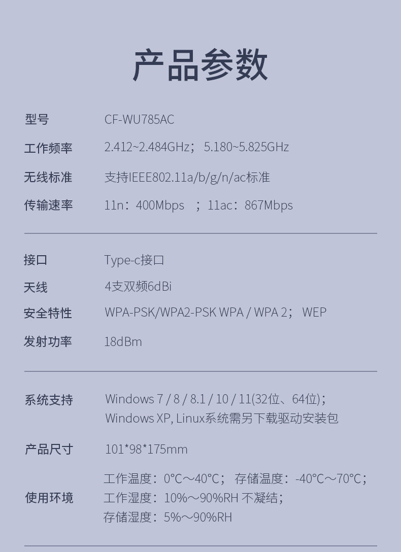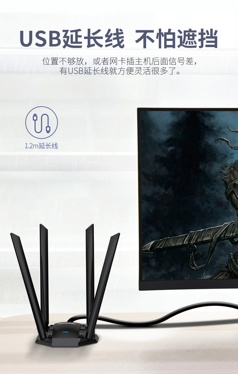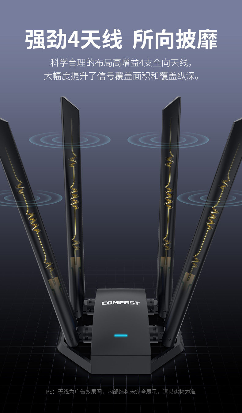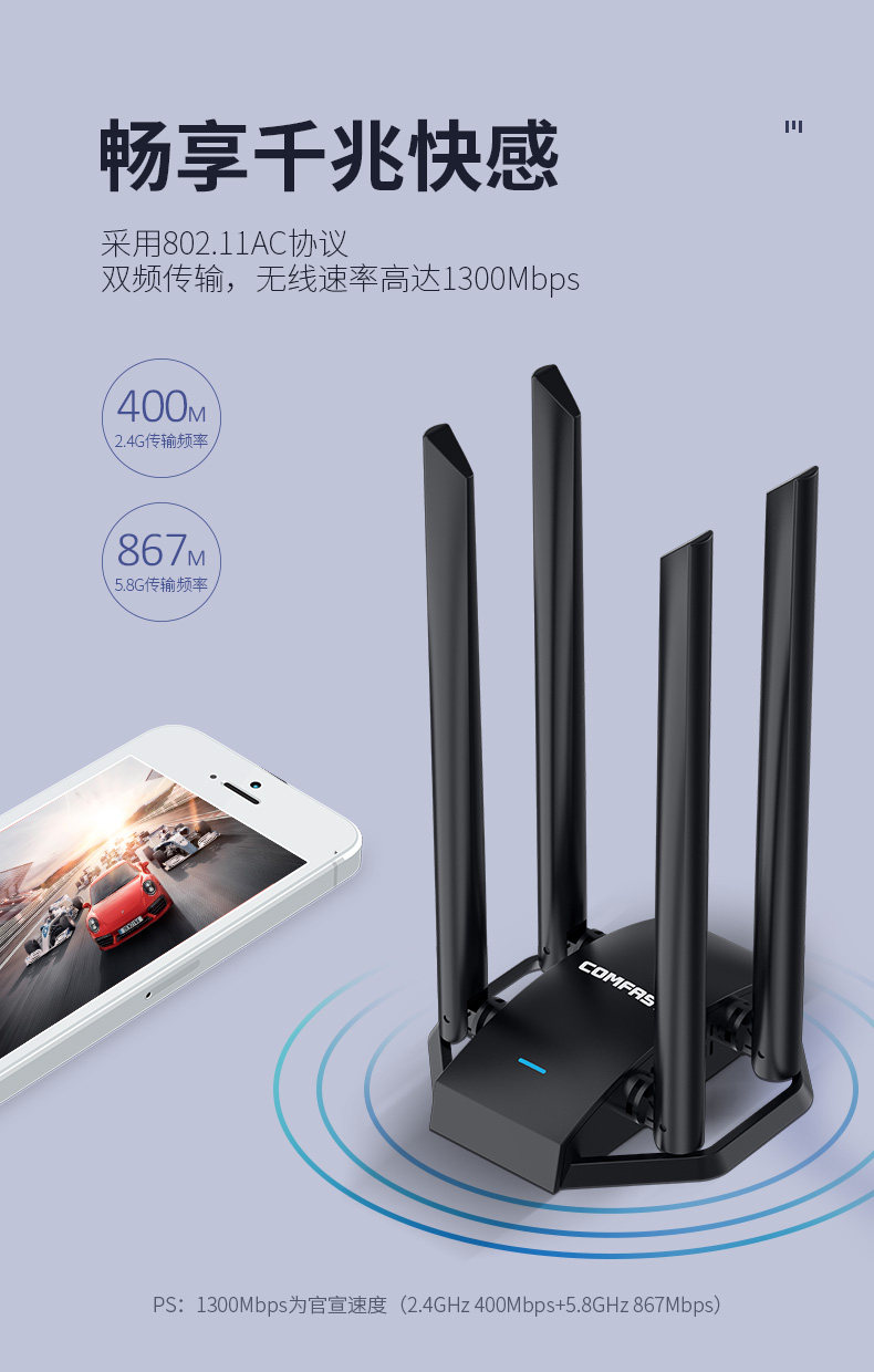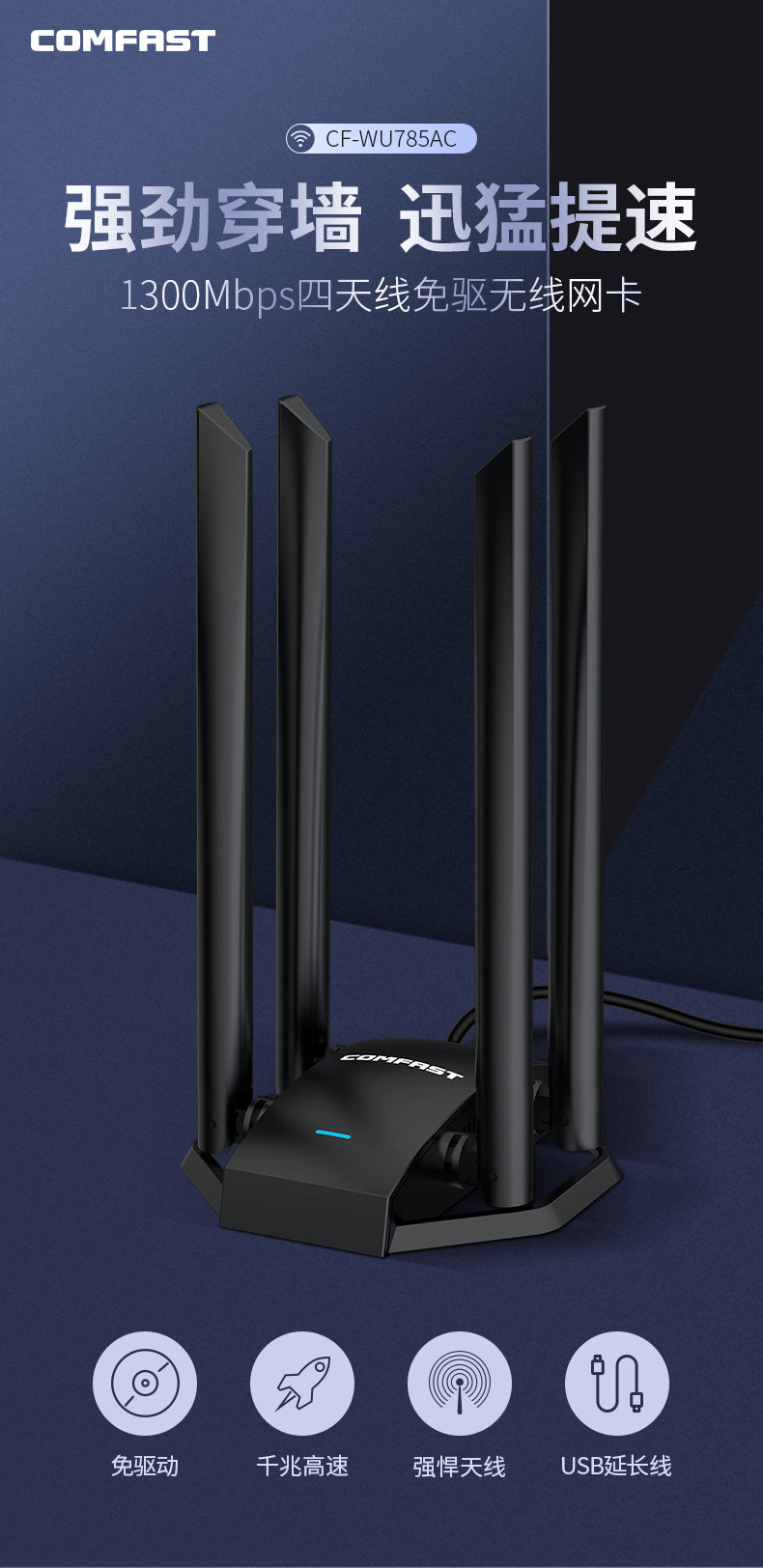 Comfast Wu785Ac High-Power Four-Antenna USB Driver-Free Ac1300M Wireless Network Card Desktop Gigabit Computer 5g Dual-Band Wifi Receiver External Unlimited Network Transmitter
