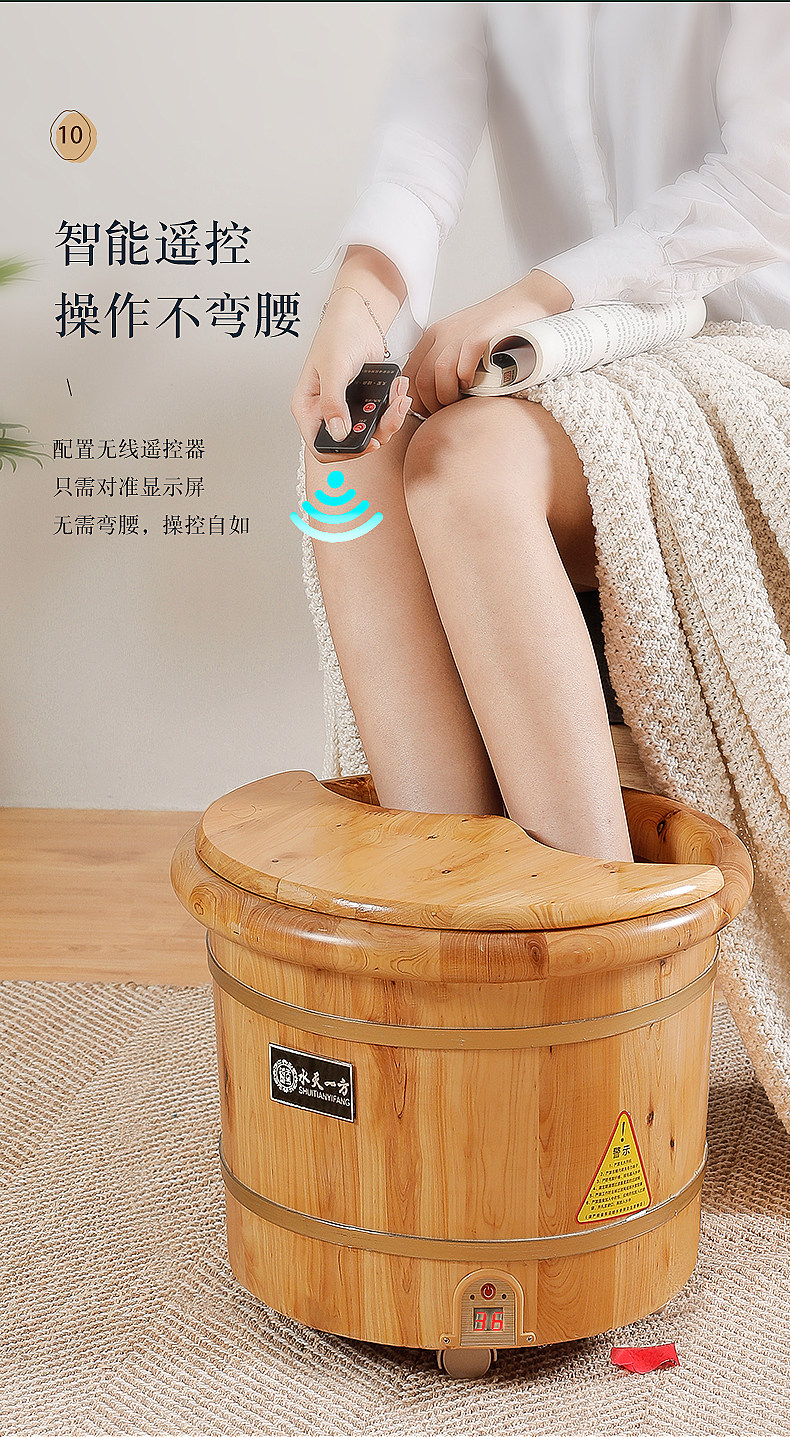 Constant Temperature Electric Heating Foot Bath Bucket, Wooden Foot Bath Tub That Extends over the Calves, Home-Use Fully Automatic Insulated Foot Bath Wooden Bucket