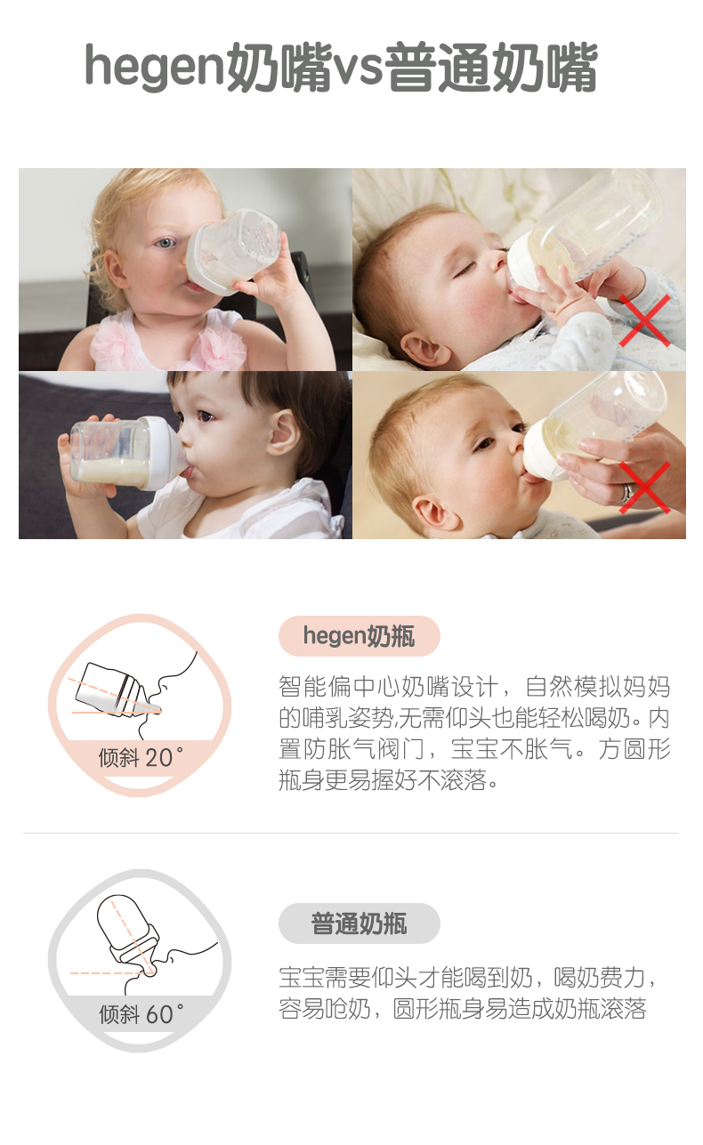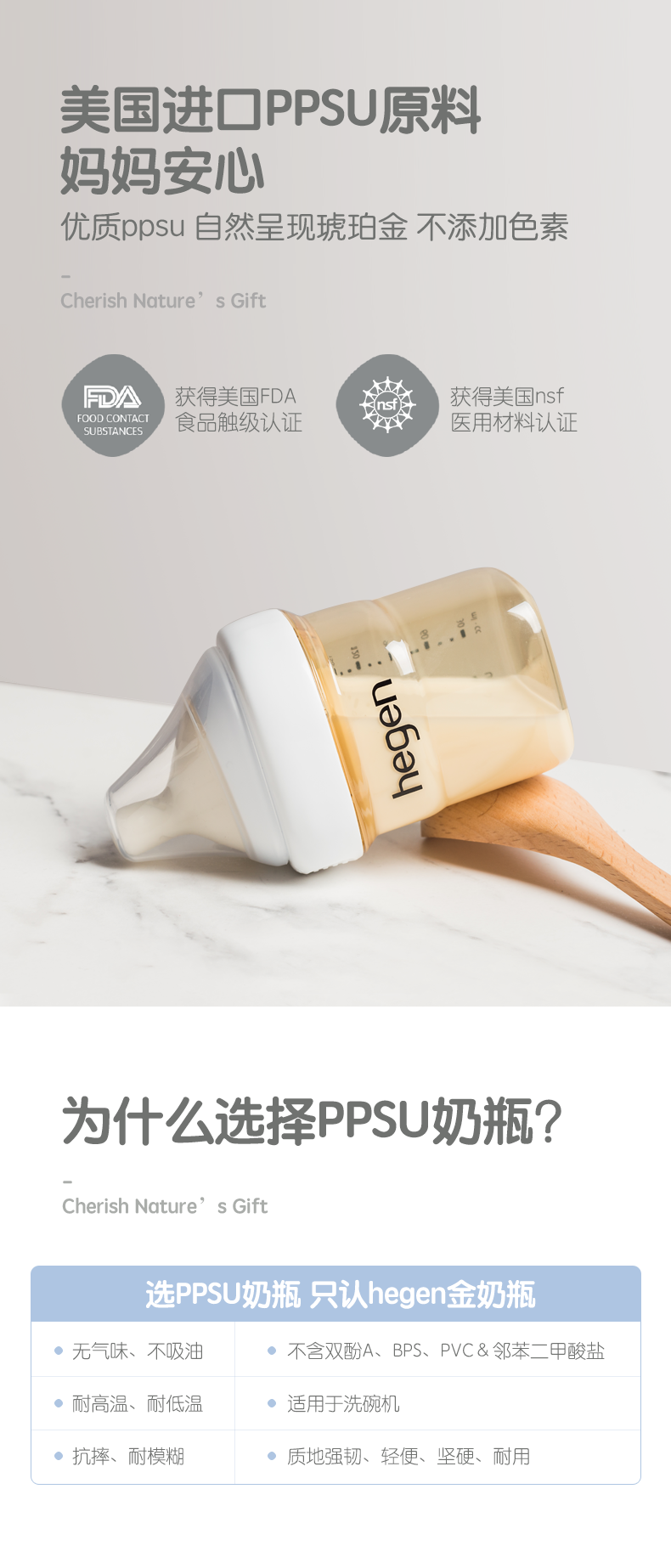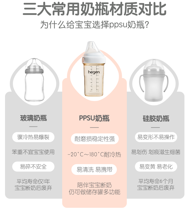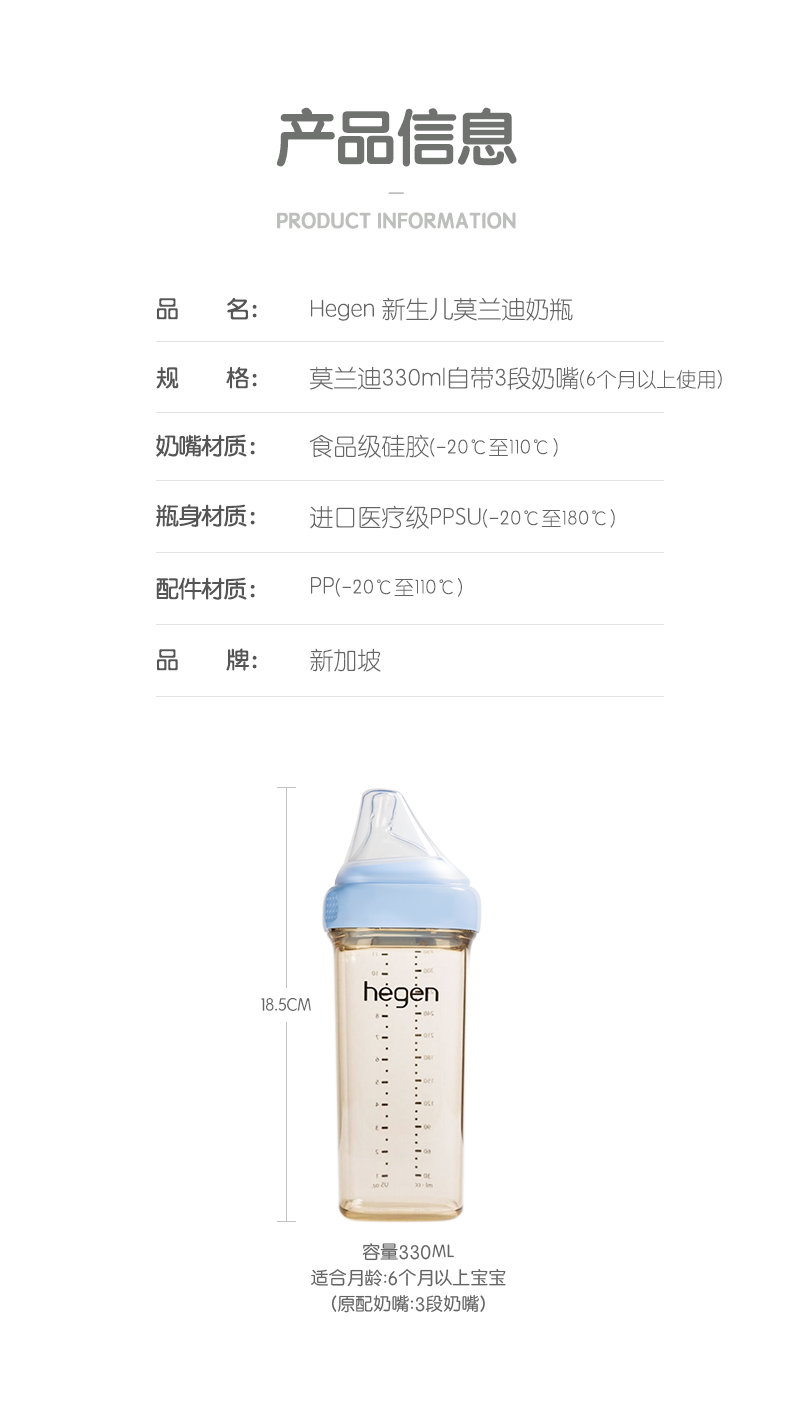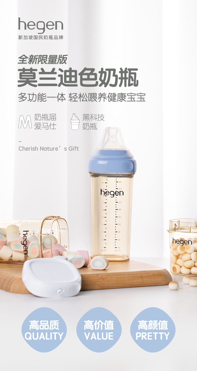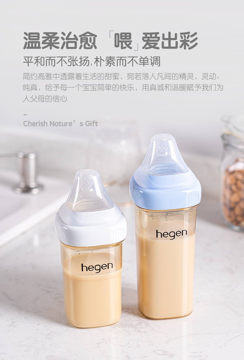 Hegen Ppsu Baby Bottle Newborn Baby Pacifier Wide Diameter Anti-Flatulence Anti-Choking Milk Bottle for 3-6 Month Old Babies