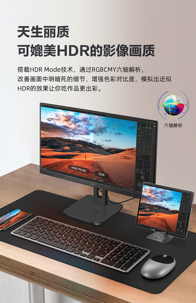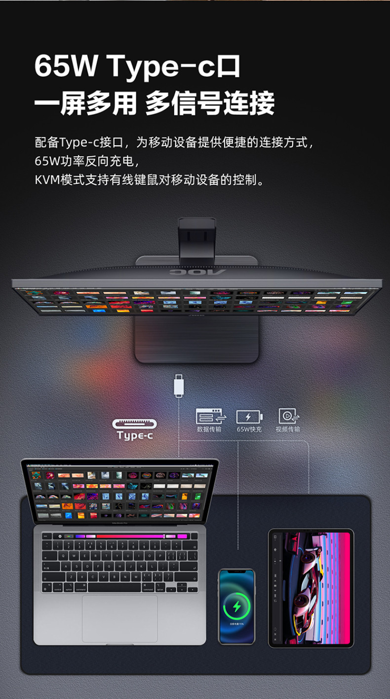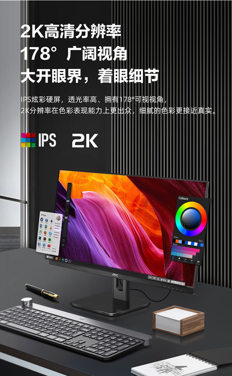 Aoc 27-Inch 2K Hd Q27P2C Office Computer Monitor Type-C Low Blue Light 24 Vertical Screen External Ips