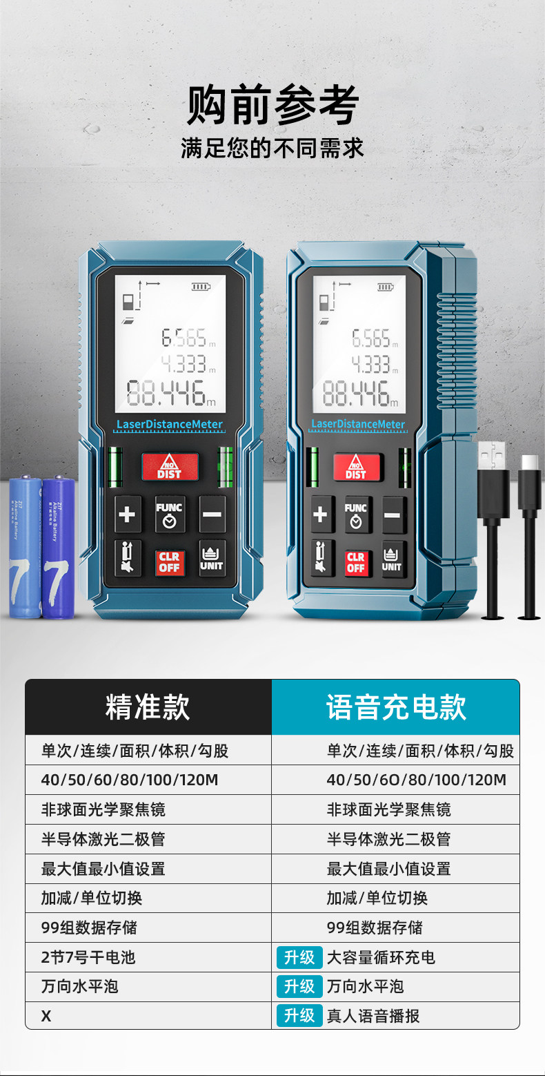 | Color Classification | 70m Basic Model [2inch Super Large Screen + Dual Horizontal Bubbles] - [10 Yuan Return Upon Arrival],Flagship Model 70m [2inch Super Large Screen + Lithium Battery Direct Charging + Dual Horizontal Bubbles],Flagship Model 80m [2inch Super Large Screen + Lithium Battery Direct Charging + Dual Horizontal Bubbles],Flagship Model 100m [2inch Super Large Screen + Lithium Battery Direct Charging + Dual Horizontal Bubbles],Flagship Model 120m [2inch Super Large Screen + Lithium Battery Direct Charging + Dual Horizontal Bubbles],Flagship Model 150m [2inch Super Large Screen + Lithium Battery Direct Charging + Dual Horizontal Bubbles],Exclusive Model 70m [2inch Super Large Screen + Voice + Lithium Battery Direct Charging + Universal Double Horizontal Bubble],Exclusive Model 80m [2inch Super Large Screen + Voice + Lithium Battery Direct Charging + Universal Double Horizontal Bubble],Exclusive Model 100m [2inch Super Large Screen + Voice + Lithium Battery Direct Charging + Universal Double Horizontal Bubble],Exclusive Model 120m [2inch Super Large Screen + Voice + Lithium Battery Direct Charging + Universal Double Horizontal Bubble],Exclusive Model 150m [2inch Super Large Screen + Voice + Lithium Battery Direct Charging + Universal Double Horizontal Bubble],Green Light Model 70m [2inch Super Large Screen + Voice + Lithium Battery Direct Charging + Universal Double Horizontal Bubble],Green Light Model 80m [2inch Super Large Screen + Voice + Lithium Battery Direct Charging + Universal Double Horizontal Bubble],Green Light Model 100m [2inch Super Large Screen + Voice + Lithium Battery Direct Charging + Universal Double Horizontal Bubble],Green Light Model 120m [2inch Super Large Screen + Voice + Lithium Battery Direct Charging + Universal Double Horizontal Bubble] |