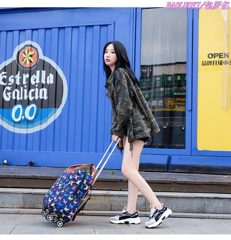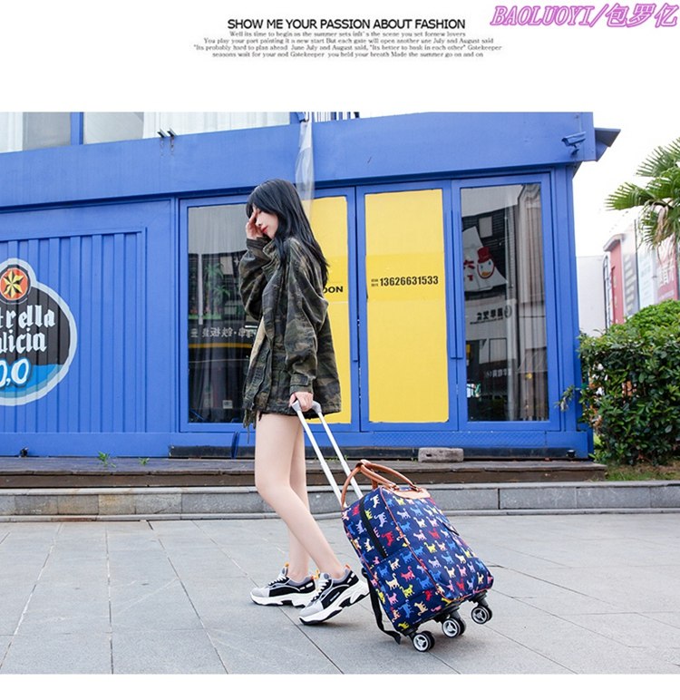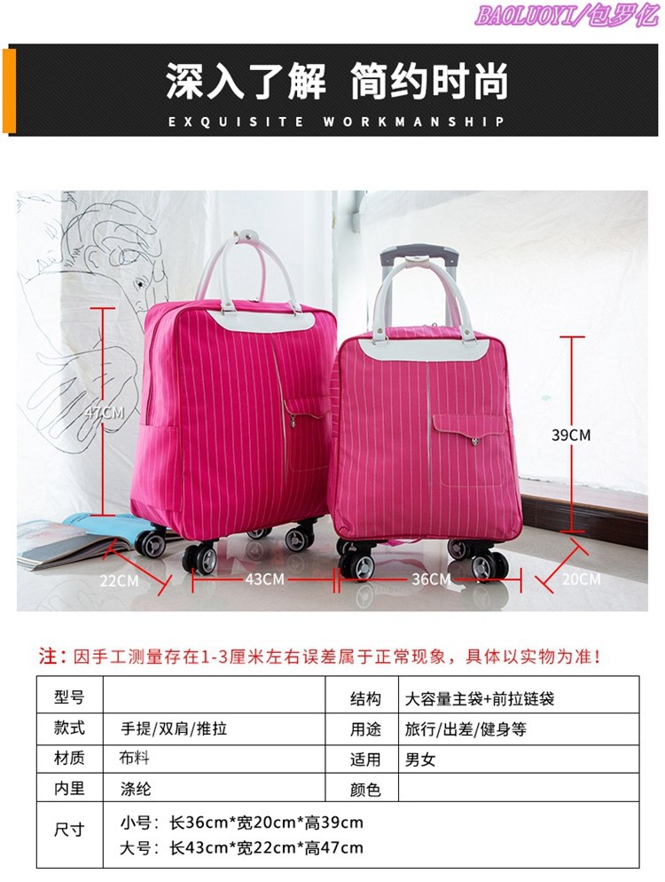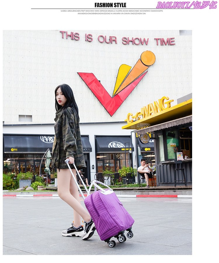 Luggage Bag, Women's Trolley Case, Large Capacity, Lightweight, Student Short-Distance Boarding, Oxford Cloth Backpack, Universal Wheel Travel Bag