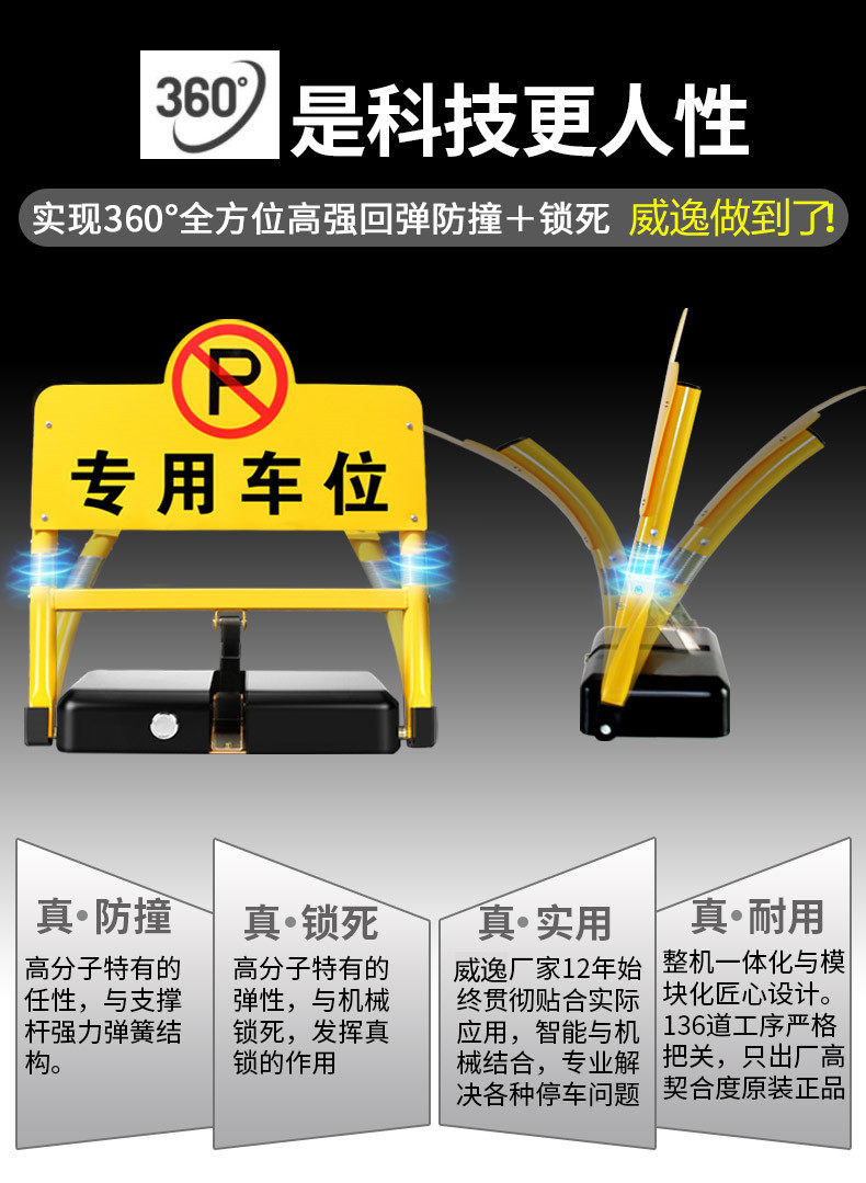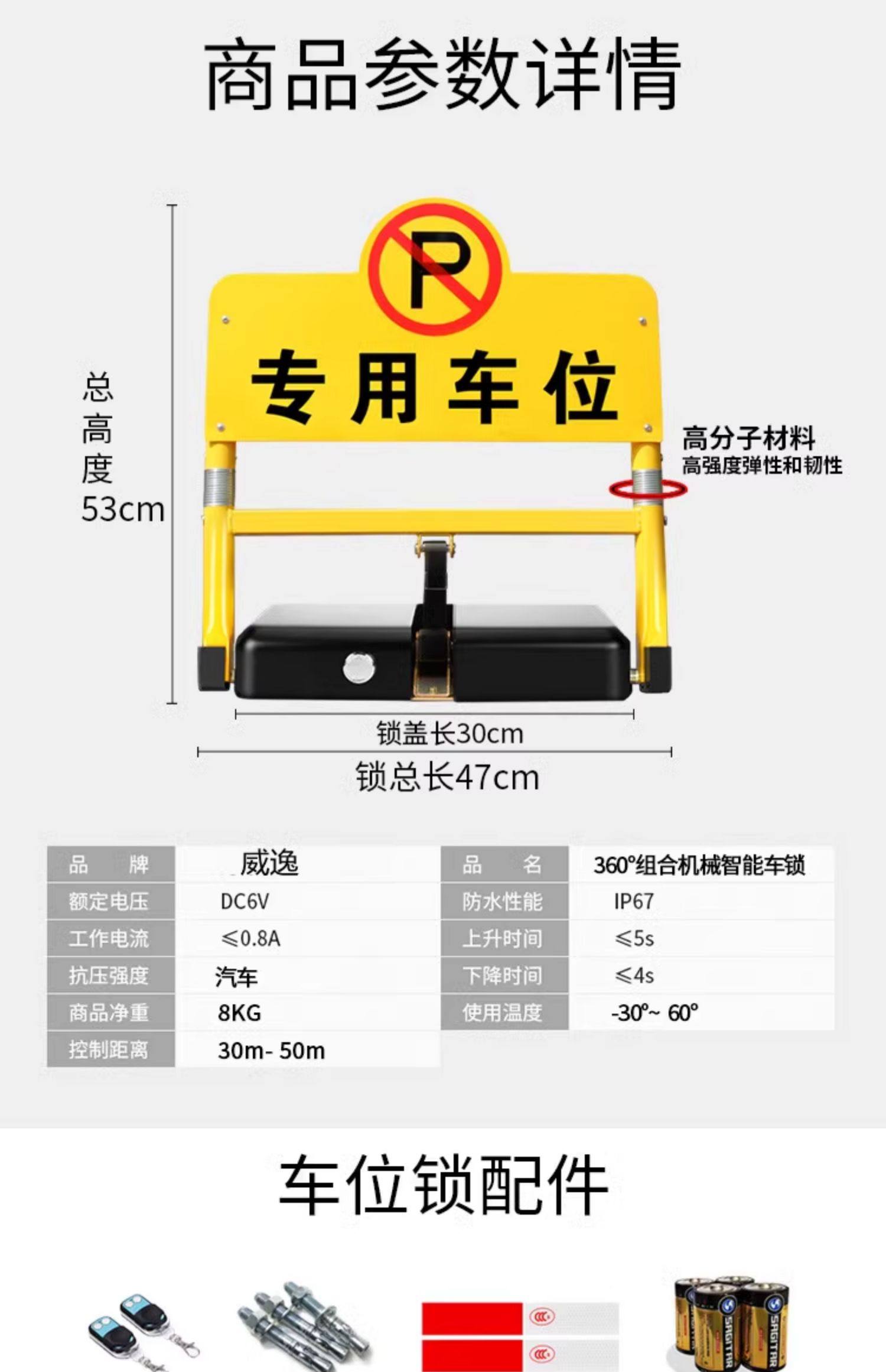 Car Parking Space Lock, Ground Lock, Parking Barrier, Remote Control Car Blocker, Space Blocker, Smart Garage, Thickened Anti-Collision