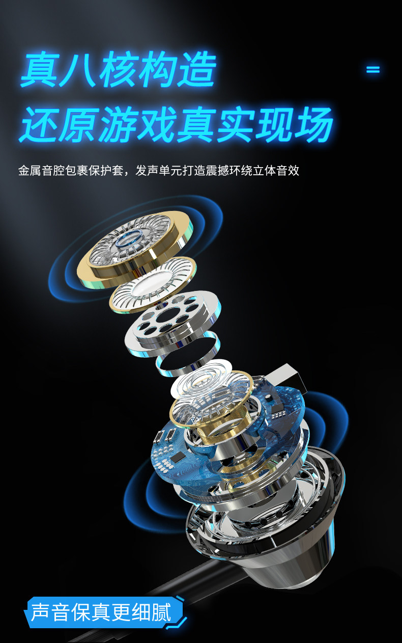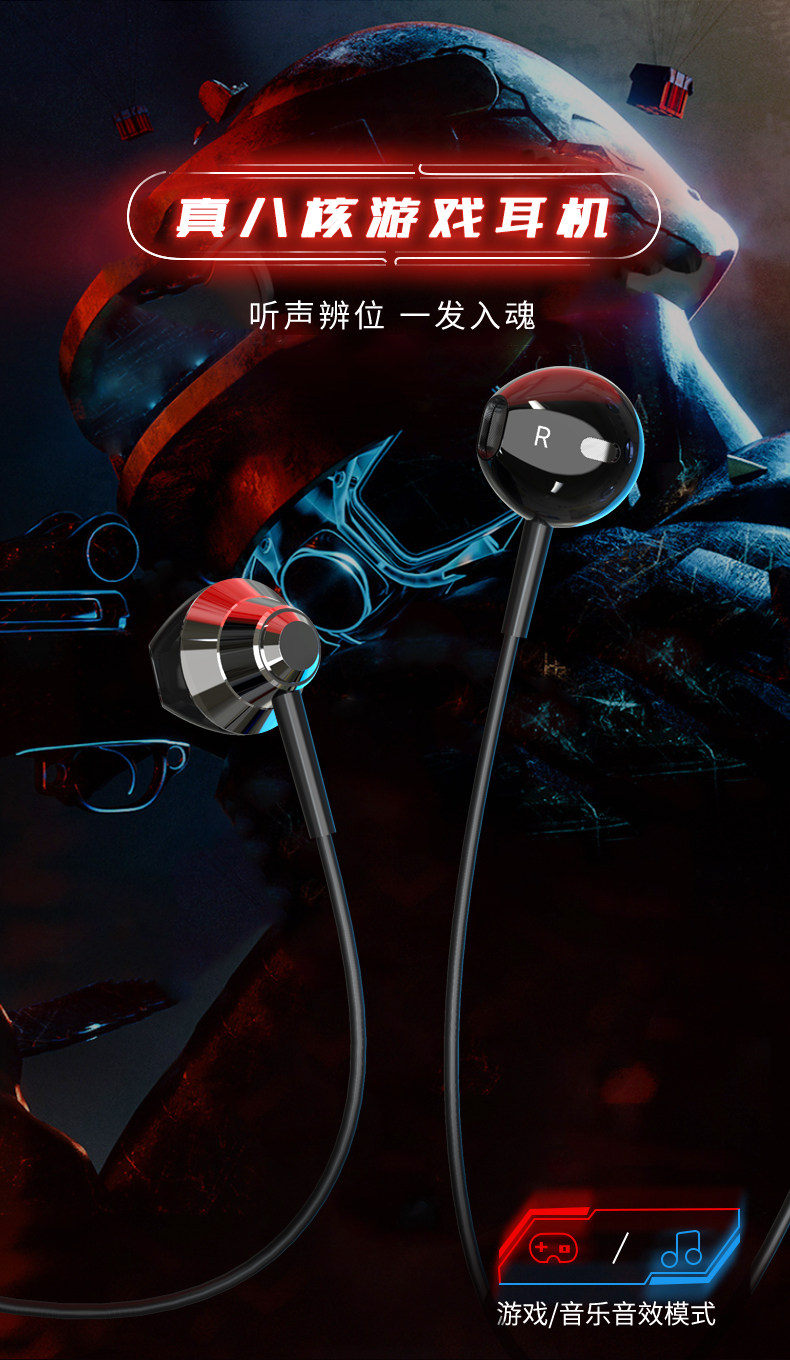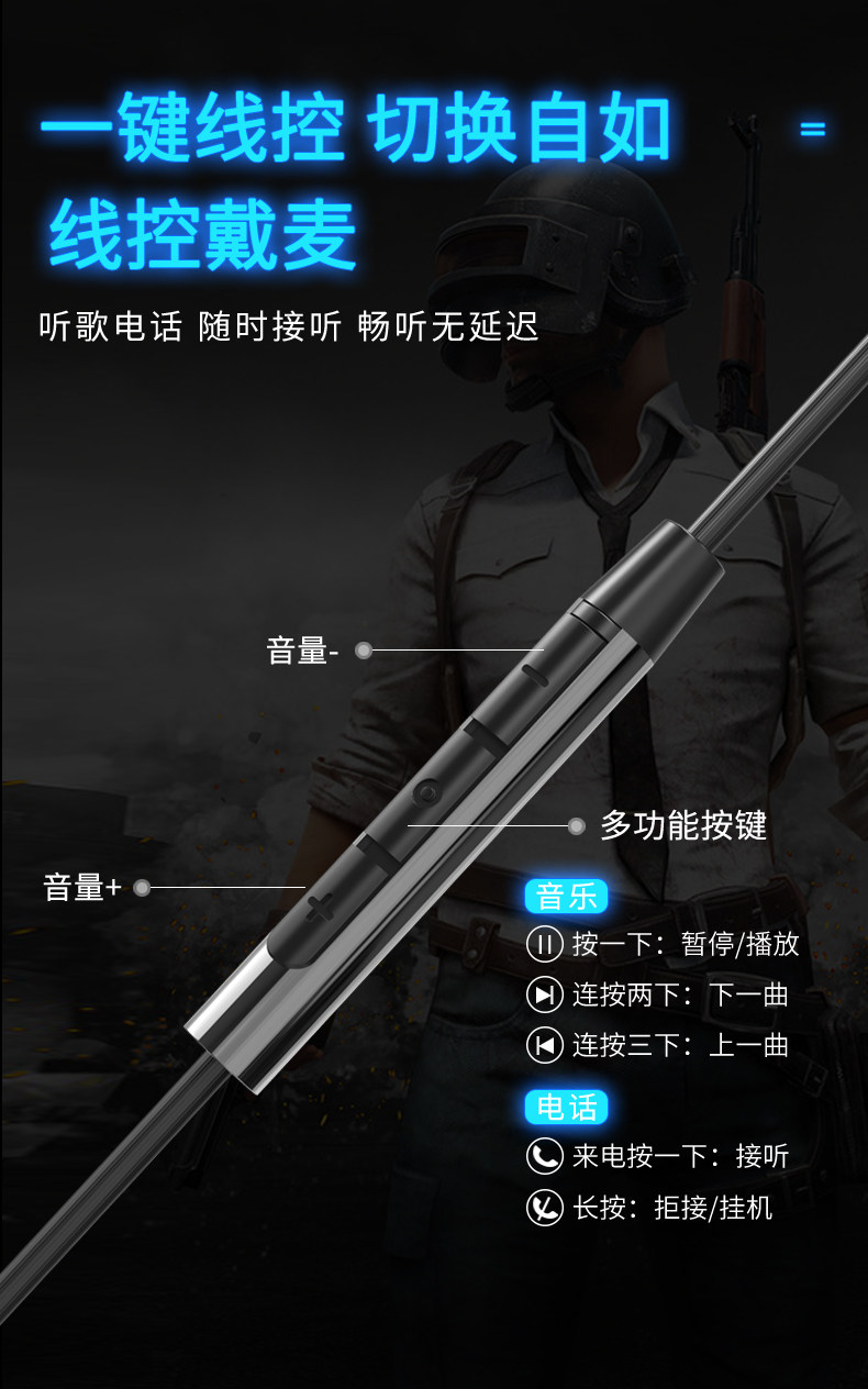 Gaming Headset Wired In-Ear Computer Extended Cable Karaoke Sound Positioning E-Sports Headset Peace Elite