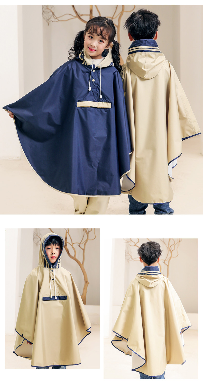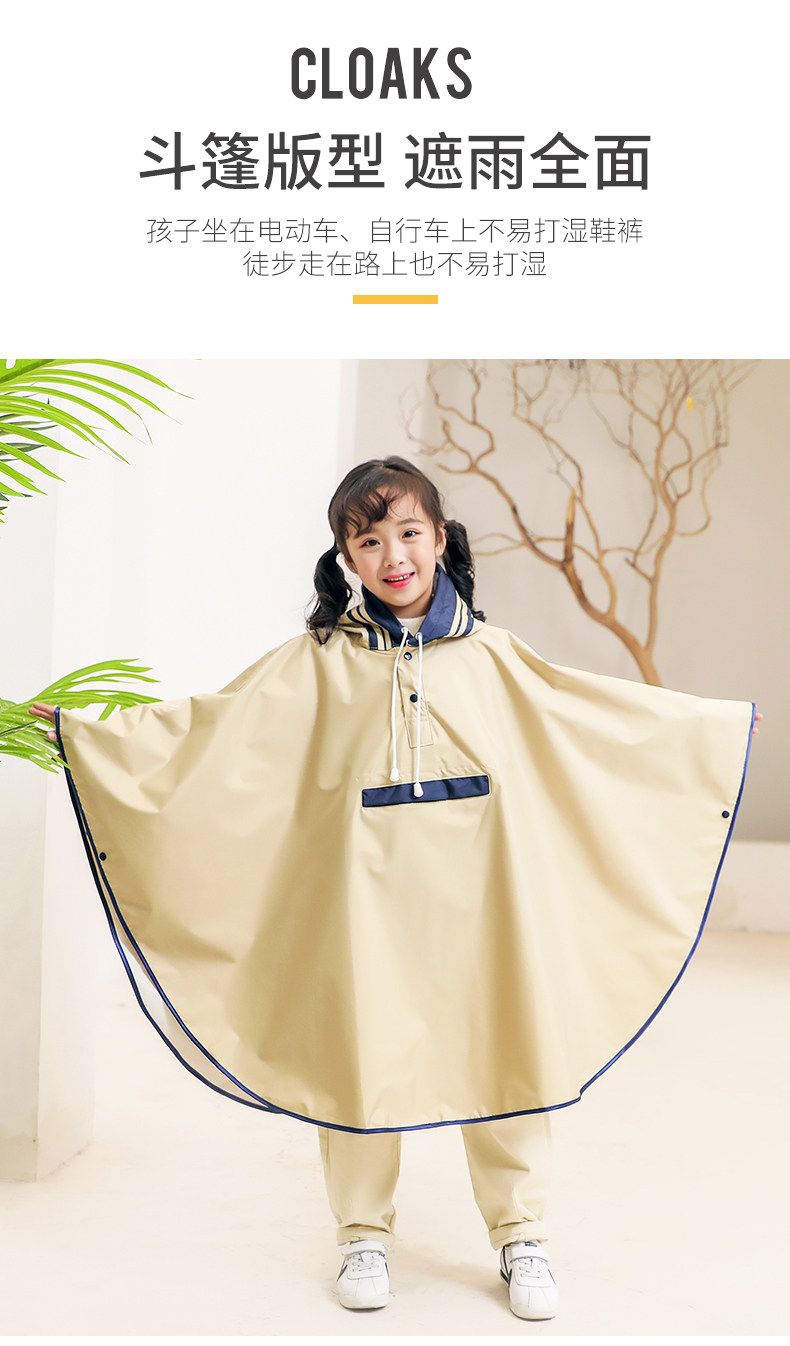 Children's Raincoat, Cloak-Style, for Boys and Girls, Japanese-Style, Special Rain Poncho for Elementary School Students, Rear-Mounted Electric Bike Raincoat, Heavy Rain Protection